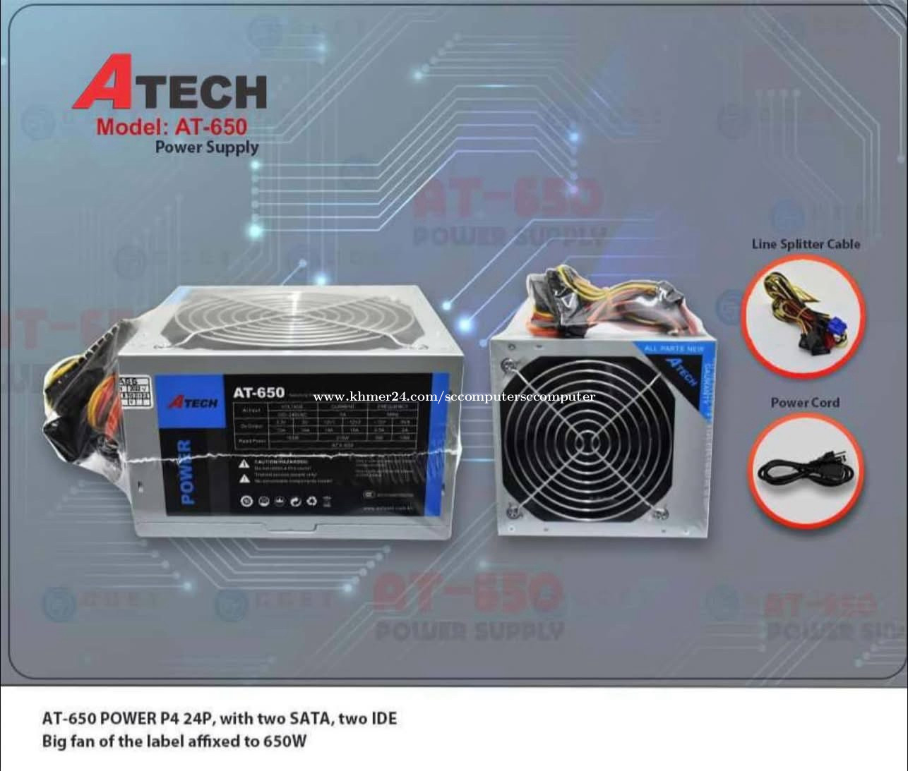 Power Supply Brand ATECH អីវ៉ាន់មាននៅក្នុងស្តុក បងអាចធ្វើការកម្ម៉ង់បាន មានកាថធានារយះពេល1ឆ្នាំពេញ 📩✅❤️ Price :xx $💵💵 AT650=13$ PS450 (300W) = 20$ PS600 (400W) = 22$ PS700 ( 500W) = 27$ AT-GD001 (750W) = 55$ AT-GD002 (850W) = 70$ AT-GD005 (1200W) = 105$ មាននៅហាង SC Computer អេសសុីកុំព្យូទ័រ 💁🏻♀️✅ ឆាតមកផ្ទាល់បានចា ❤️ ☎️ 089978xxxClick To Call telegram(ឈី ឈី) ☎️ 016200xxxClick To Call Smart ចុចLink ចូលគ្រុបបោះដុំ បាន 👇🏻 ✅ Link Group បោះដុំ = https://t.me/+G4d1DH1HM51jZGE1 ✅Link TikTok = https://www.tiktok.com/@kimchhy77?_t=8rsylp5kaDH&_r=1 ✅Link Telegram = https://t.me/kimchhy_999 ✅Link Khmer 24 = https://www.khmer24.com/sccomputersccomputer ✅Link FB = https://www.facebook.com/share/1HXXej9fPH/?mibextid=LQQJ4d ✅Maps : https://maps.app.goo.gl/amXqFMtwRzDdWHKQ9 អរគុណសំរាប់ការគ្រាំទ្រហាងSC Computer អេសសុីកុំព្យូទ័រ រហូតមក🙏🏻❤️