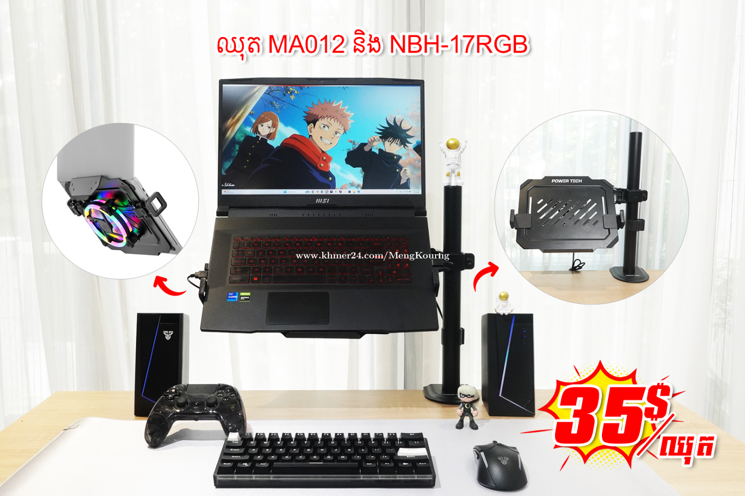 POWER TECH MA012 Single Monitor Arm ✅Fit Screen 17"-32" ✅Weight (per screen) : 9KG ✅Tile Range +45°~-45° ✅Swivel Range +90°~-90° ✅Portrait and Landscape Orientation matches viewing needs ✅Cable Clip: routes cables to reduce clutter for a clean look and more organized place NBA-17RGB ●Steel Laptop Holder with RGB lighting cooling fan ●Heavy-Duty Steel Construction: provides extra strength and durability ●Width Adjustment: fits a variety of appliance/device sizes and shapes ●Good Ventilation: open design offers increased air circulation - working as a heat sink ●Safety Ledge Stopper: prevents your devices from slipping Note: Price not include installation and Delivery (សេវាដឹកគិតតាមជិតឆ្ងាយ) 👉ផ្នែកលក់☎012787xxxClick To Call https://t.me/cmksale1 👉ចូលរួមគ្រុបយើងខ្ញុំ https://t.me/+pMlYdQSBYkEyYTU1 👉ទំនិញរាប់ពាន់មុខក្នុងដៃអ្នក🌏cmkcomputer.com 🌐https://www.facebook.com/MengKourngComputer 🌐https://www.facebook.com/cambodiafantech