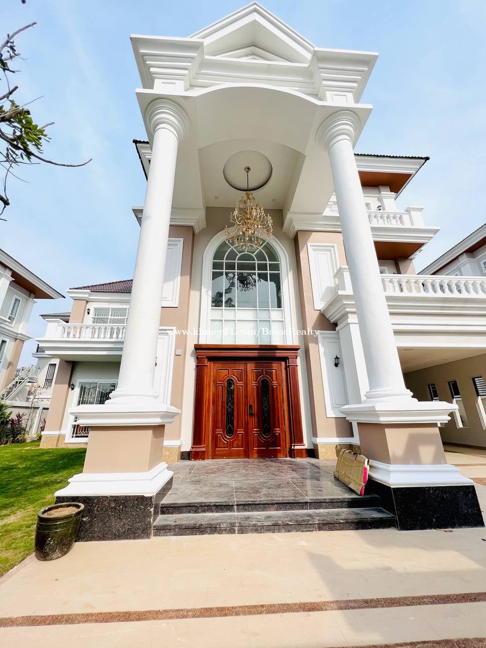 វីឡាព្រីនមុខសួនសម្រាប់ជួល នៅក្នុងបុរីប៉េងហួតបឹងស្នោរ | Prince Villa For Rent in Borey Penghouth Boeung Snor - តម្លៃជួល | Rent Price: $6,000/month (ចរចា) - ទំហំដី l Land Size: 23m x 25m - ទំហំផ្ទះ l House Size: 12m x 19m - បន្ទប់គេង | Bedroom: 06 - បន្ទប់ទឹក l Bathroom: 06 - បន្ទប់ការិយាល័យ | Office: 01 - បន្ទប់ទទួលភ្ញៀវ l Living Room: 01 - ផ្ទះបាយ | Kitchen: 01 - សម្ភារៈខ្លះៗ | Some Furniture - ទិសខាងលិច | Facing West