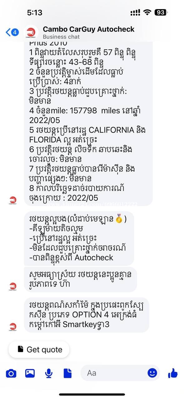Prius សេរីឆ្នាំ2010 Option 4 1. កំដៅពូក 2. អេក្រង់ធំ 3. បាស់JBL 4. ស្មាត៣ទ្វារ 5. ប្រព័ន្ធបន្សុតជាតិខ្យល់ក្នុងរថយន្ត plasmacluster 6. យ៉ាន់ស្ពរវង់១៧ 7. UV Film កញ្ចក់ជិត ប្រភេទល្អ 8. ចង្កៀងគុជ៤គ្រាប់ជិត 9. ម្ចាស់ផ្ទាល់ 10. អូតូឆែកពិន្ទុខ្ពស់(មេឡាន) 11. មិនមានបុកប៉ះ ឬប្តូរពណ៌ 12. អាគុយ៣ផ្លាក ABS នៅអែម 13.ម៉ាស៊ីន ប្រអប់លេខ និងជើងក្រោម ហាប់ណែន ធានាឡានស្អាត អត់ច្រេស 14. ស្លាកលេខវែង តម្លៃចរចារ