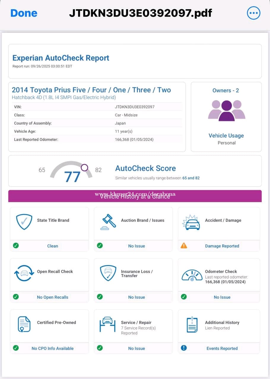 Prius 2014 option 3 ETA ថ្ងៃ09 ខែ01 ឆ្នាំ2026 ក្នុងស ឡានcali 16មឺនម៉ាយ ថ្មីណាស់ Auto check 77ពិន្ទុ សាង 18300$ រៀបចំជូន 19200$ + ធានា1 ខែពេញ 016759xxxClick To Call 066449xxxClick To Call telegram