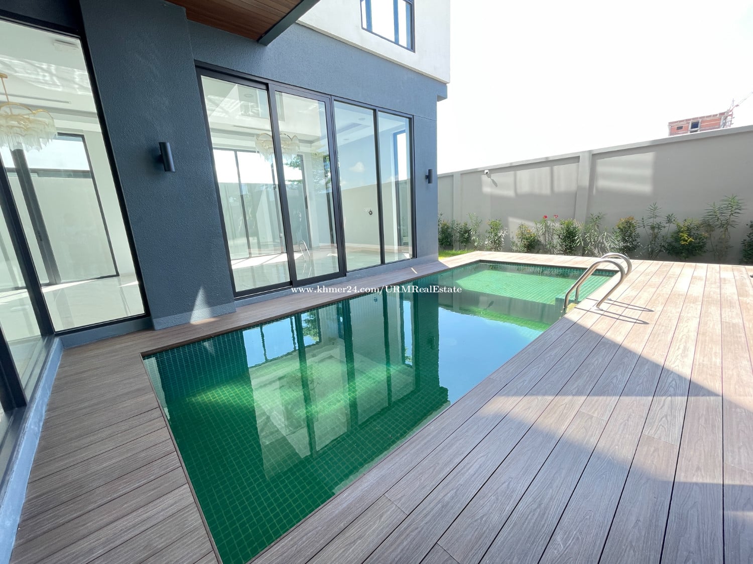 Private Swimming Pool Villa for Sale Near AEON Mall 3 - Selling Price: 1,750,000$ - Land Size: 17,5mx20m - Building Size: 14,5mx16m - 3 floors - Bedroom: 5 - Bathroom: 7 - Maid Room: 2 - Gym Room: 1 - Living Room: 2 - Private swimming pool - Parking: 3 cars - Ownership: Hard Title Deed - Location: Hun Sen Boulevard, Sangkat Cheung Aek, Khan Dangkor, Phnom Penh - Contact: 010460xxxClick To Call/ 017740xxxClick To Call - Telegram Link: https://t.me/sao_so_pheak - WhatsApp Link: https://wa.me/message/AMTYCYEPAKYZC1 - WeChat ID: so-pheak