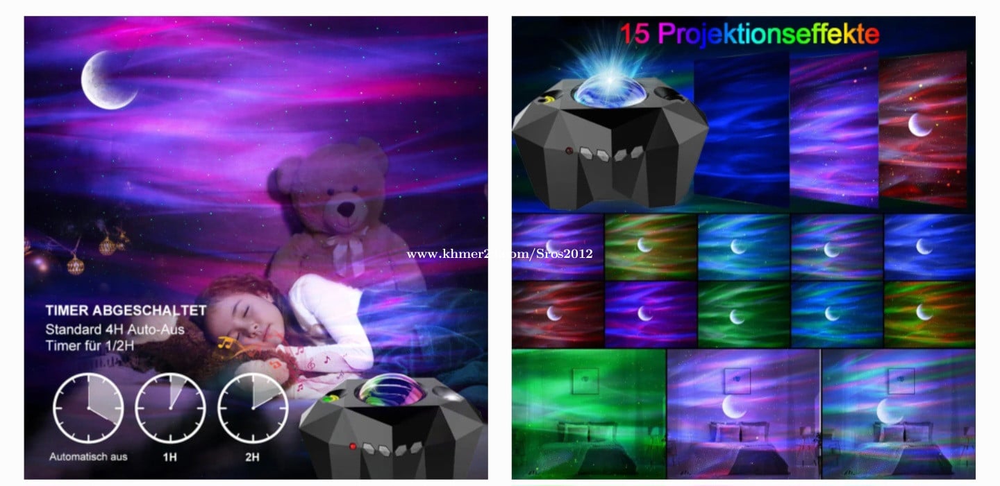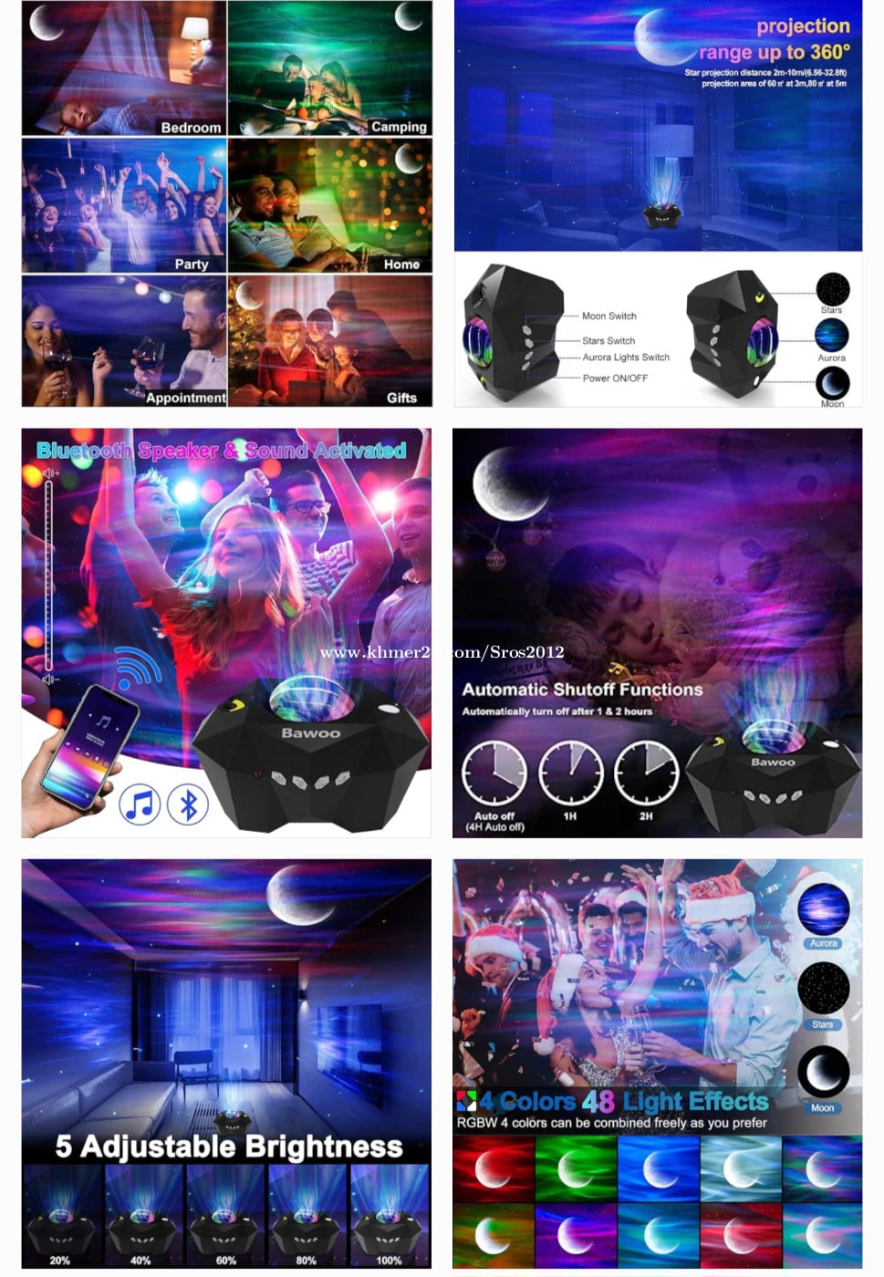 Features: 【Amazing Dream Aurora Effect】--This Northern Lights Aurora Projector can project patterns of Dream Aurora、stars and moon. The dream aurora effect can be manually or automatically switched into single-color、dual-color and tri-color mode (any combination of red, blue, green, and white). You can adjust the color, brightness, and flow speed of the light through the Remote Control to create different lighting effects. 【Dynamic Star Twinkling Technology】--our Aurora Borealis Light Star Projector uses a new technology "star lights blinking" (The green stars will not stay still all the time, it will flicker for a while and then disappear for a while, just like a breathing star, the quiet night, let the children quietly intoxicated. ) 【Dimmable & 13 Colors Options】--Northern Lights Galaxy Projector Up to 13 different mode colors settings to create magic galaxy dream aurora space for your kids, make you feel like travel in the universe. The light creates a peaceful and relaxed sleeping atmosphere for you and your kids, making adults and kids get sleep better, the dream aurora star lights moon projector is absolutely perfect gift for kids. 【Perfect Room Decor】--Dream Aurora Star Projector is the perfect decor for a room and ideal gift for birthday, Christmas, anniversary. Let the galaxy lights projector bring you a beautiful starry night and vast aurora effects at your home, and turn your room into a home planetarium, allowing you to dream of space at night, create an otherworldly visual experience. 【Remote Control、Automated Control Timer & Hi-Fi Stereo Music Speaker】--Our star projector built-in 1H, 2H, 4H auto-off timer.The equipped remote control can control all functions of the projector, including timing, light color, brightness, mode, sound, etc.Built-in with a high-quality Bluetooth Hi-Fi Stereo Music Speaker, it also supports playing music on your phone wirelessly. The lights will sync the music once open the sound control mode, creating an immersive sound & visual atmosphere. 【Premium Quality & Large Coverage 】--our dream aurora Star Projector can completely cover the ceiling or the wall of the room. The largest coverage projection area is 80㎡