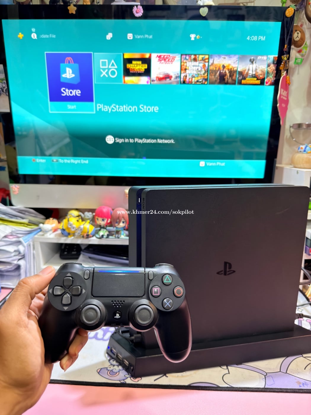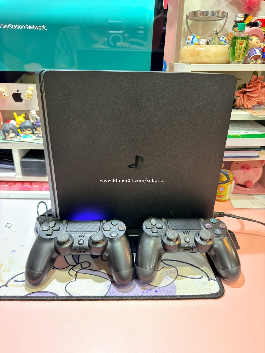 PS4 slim ដាច់ចិត្តលក់ហើយ ប្រូៗណាដែលចង់បានម៉ាស៊ីនស្អាតដូចថ្មី លេង 4 5 ម៉ោងអត់លឺកង្ហារឆ្នាំខ្ពស់ ទិញមកមិនសូវបានលេង មួយនេះអេមណាស់ Version 12.00 HDD 1T ដៃV2 2 original 1 copy 1 Dis Game 3 No JB