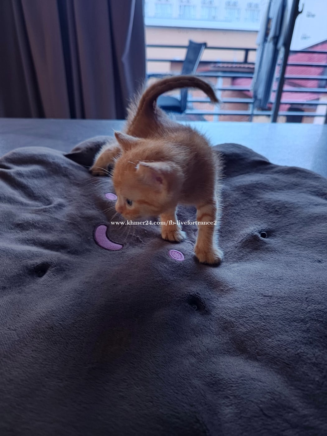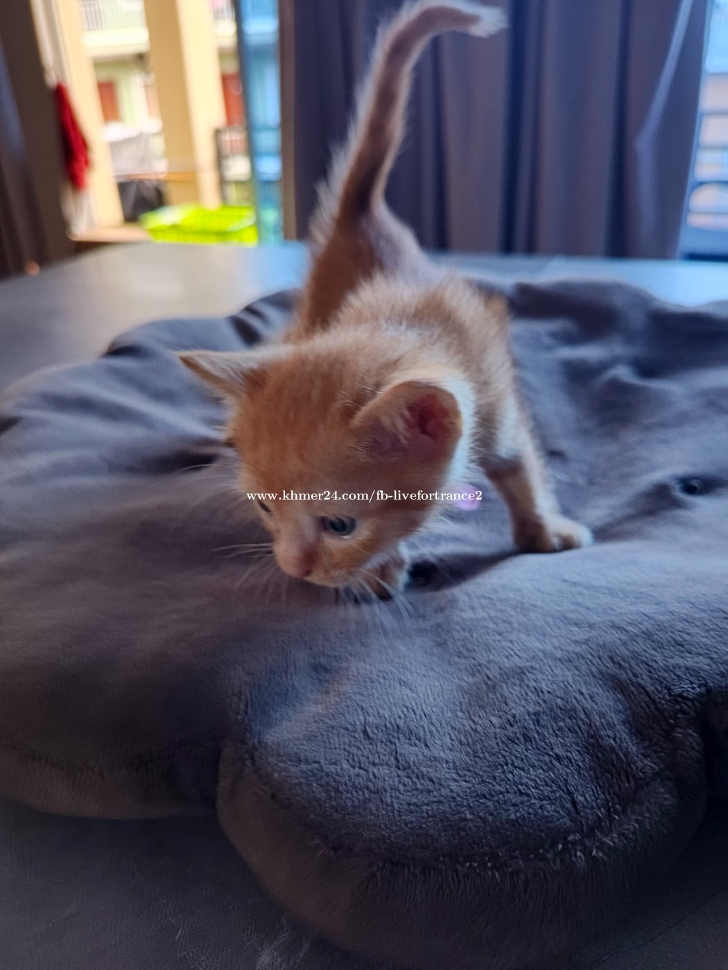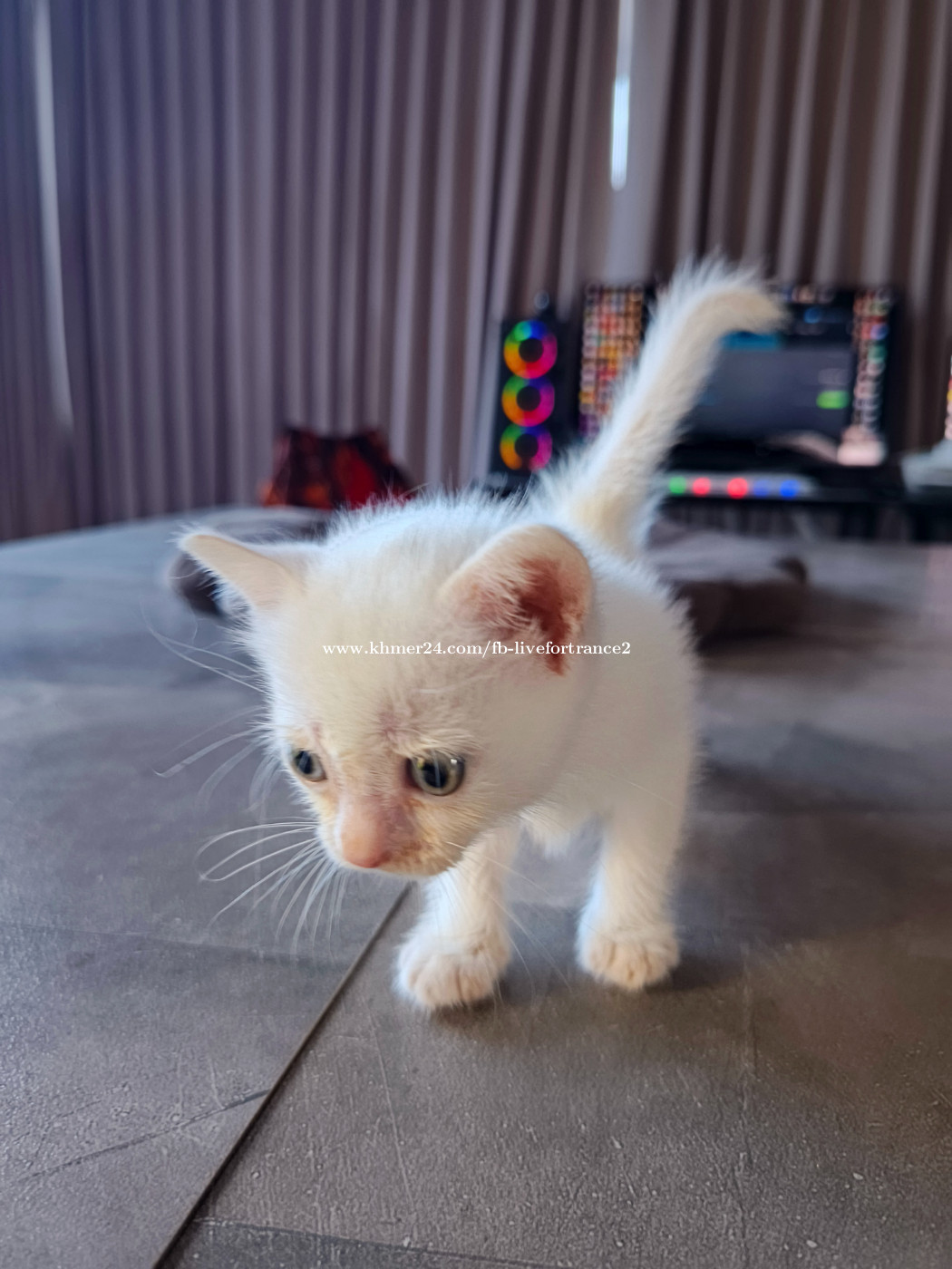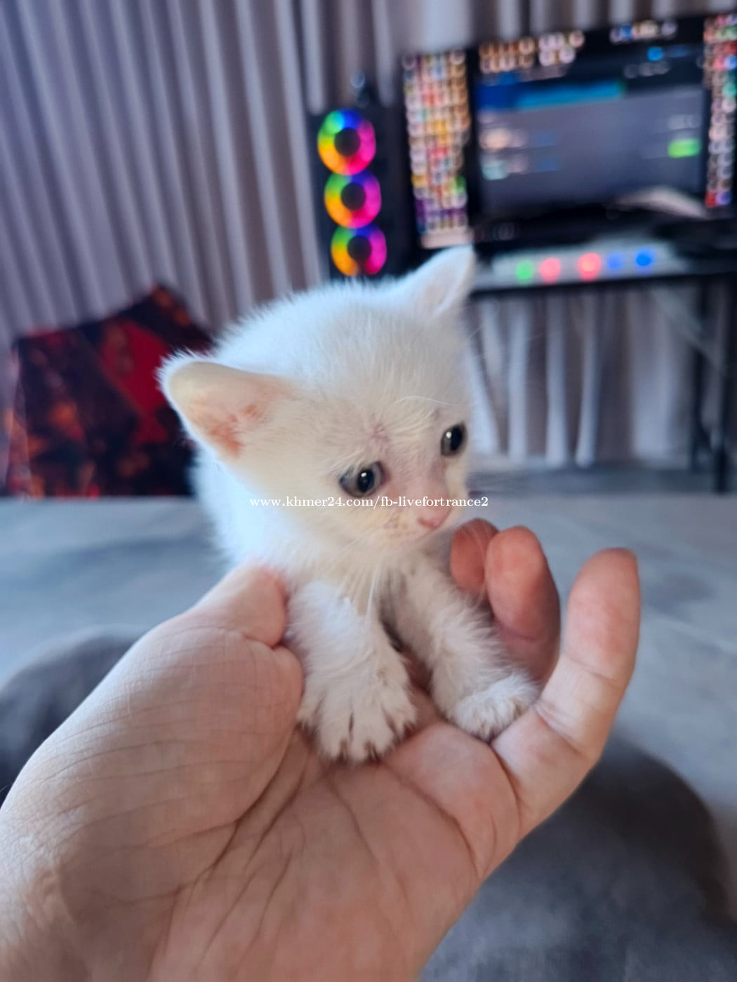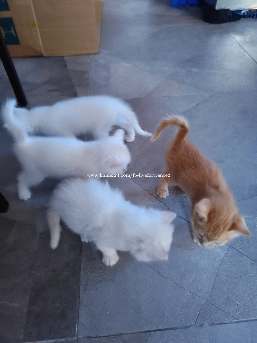 2 White kitties Khao Manee (one boy and one girls) Orange kitty - Arabian MAU From same white mother. Can eat food and can drink water and milk. Age 40 days.