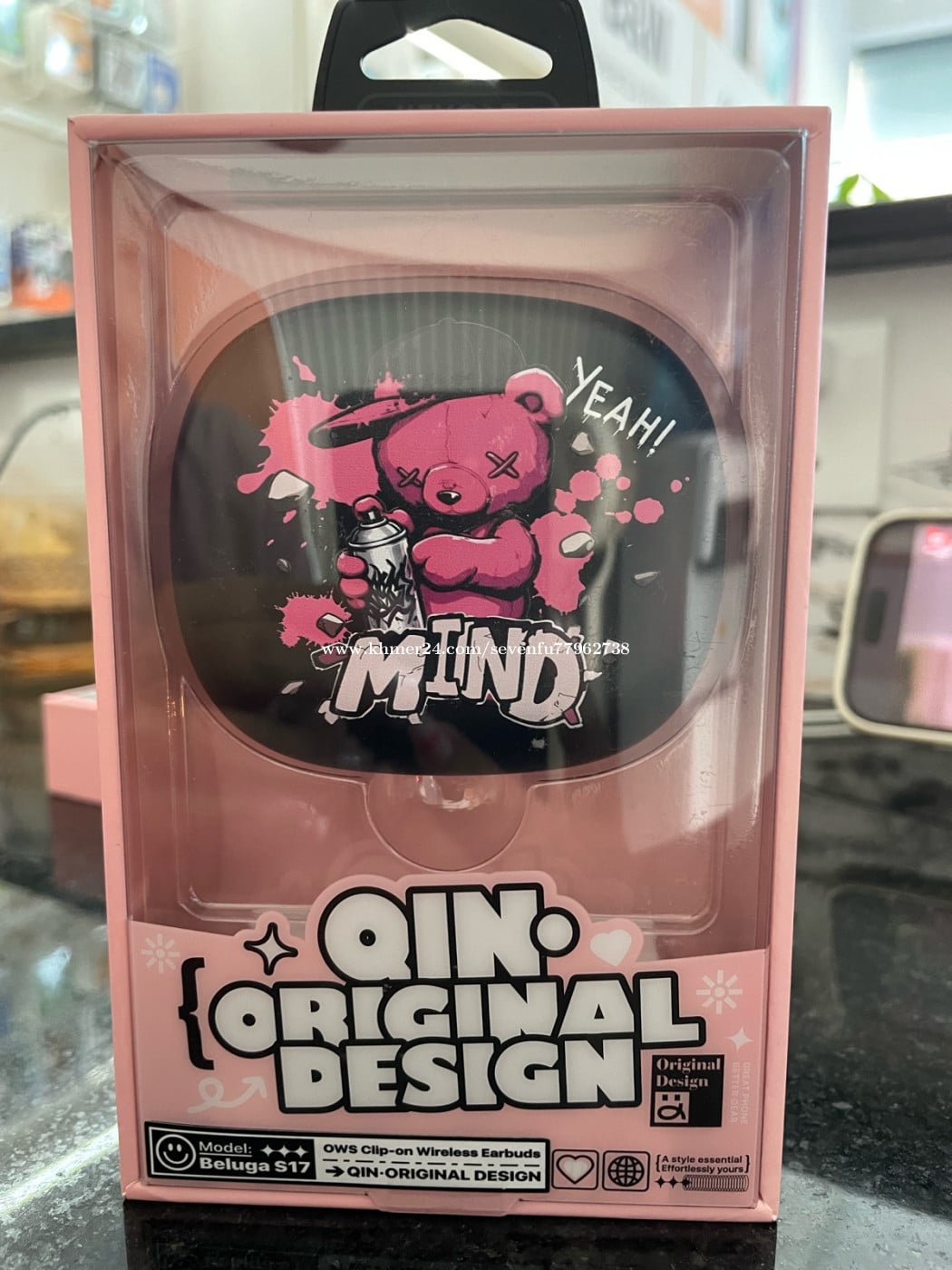 1. Wireless Bluetooth Connection • Connects to smartphones, tablets, and computers via Bluetooth • Used for music playback, video watching, and phone calls 2. OWS Clip-on Design (Open Wearable Stereo) • Does not go into the ear canal; clips onto the outer ear • More comfortable to wear, suitable for long-term use • Allows awareness of surrounding sounds, ideal for commuting, sports, and daily activities 3. Music Playback • Supports everyday audio needs such as listening to music, watching videos, and short-form content 4. Calling Function • Built-in microphone for making and receiving phone calls and voice chats 5. Touch Controls (Common Feature) • Light touches on the earbuds can typically control: • Play / Pause • Answer / End calls • Track switching • (Exact functions depend on the user manual) 6. Charging & Storage Case • Earbuds automatically charge when placed in the case • Easy to carry and store, extending overall battery life 7. Stylish Appearance • Packaging highlights “QIN Original Design” with a trendy, cute aesthetic • Features a half-mechanical panda graphic, emphasizing individuality and originality 📌 Suitable For • Users who dislike the pressure of in-ear earbuds • Commuting, office use, and light sports activities • People who prioritize comfort and design over heavy bass and sound isolation