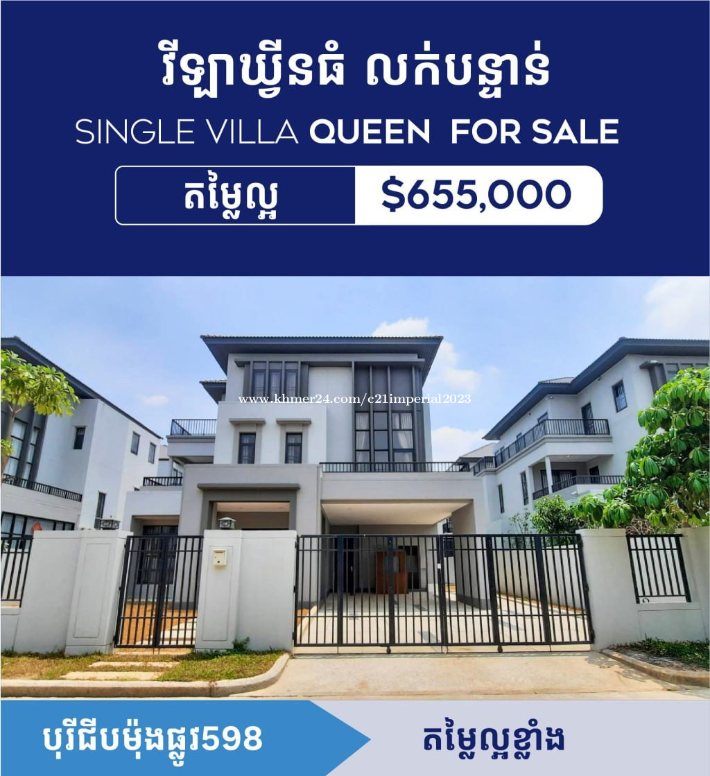 វីឡាឃ្វីន(ធំ) លក់បន្ទាន់ខ្លាំង! បុរីជីបម៉ុង 598 ជិត Aeon2 Macro and Gobal Market - ទំហំដី: 18.5m x 23m - ទំហំផ្ទះ: 14m x 13m - បន្ទប់គេង 6 បន្ទប់ទឹក 8 - ផ្ទះដេគ័រថ្មីស្អាត - ផ្ទេរឯកសារត្រឹមបុរី Tel 098990xxxClick To Call / 089990xxxClick To Call