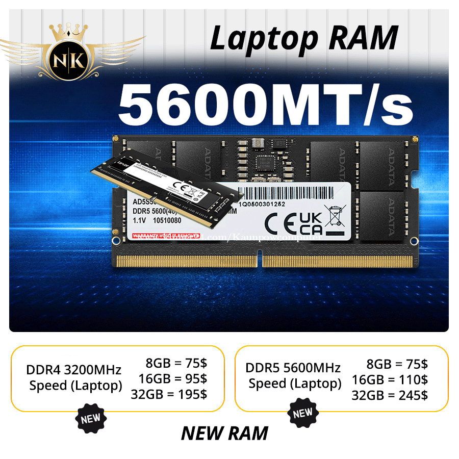 New Laptop, for upgrade !! ------------------------------------------- DDR4 3200MHz - 8GB = $75 - 16GB = $95 - 32GB = $195 ———————————- DDR5 5600MHz - 8GB = $75 - 16GB = $110 - 32GB = $245 ☎️ ទនាក់ទំនង 0930957xxxClick To Call 77 💬 Telegram : t.me/cnkcomputer93 🌐 Website: https://cnkcomputer.com/