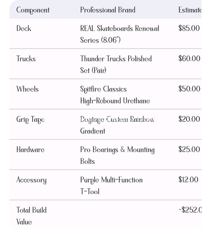 The 8.06" width is the perfect "all-rounder" size for both street and park. 📍 Deck: REAL Renewal Edition (8.06") 📍 Trucks: Thunder (Ultra-responsive) 📍 Wheels: Spitfire Classics 📍 Grip: Custom Rainbow Dogtape Bonus Included: Comes with a purple multi-function T-Tool for on-the-go adjustments. Condition: New/Lightly Handled (Ready to ride). ☎️ 0883448xxxClick To Call: Telegram