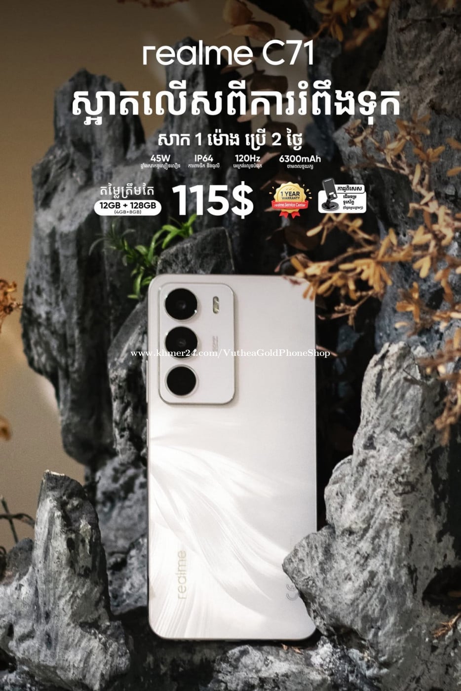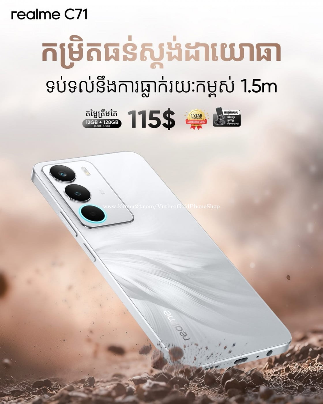 លាហើយពាក្យថាសេវាខ្សោយ🤩😉 realme C71 ភ្ជាប់មកជាមួយនឹងប្រព័ន្ធស្រូបរលកសេវា ដែលអាចផ្តល់ឲ្យអ្នកនូវការប្រើប្រាស់បានយ៉ាងរលូន និងរហ័សគ្រប់ទីកន្លែង😋⚡️🪽 🌟មានលក់ហើយ 🛒អាចធ្វើការទិញតាមរយៈហាងដែលនៅជិតលោកអ្នកបំផុត🥰 ⚡️ realme C71 តម្លៃត្រឹម 115 ដុល្លារ (4GB +8GB / 128GB) 🎁ទទួលបានកាដូ៖ ជើងទម្រទូរស័ព្ទ (ចំនួន ១) 🌟ប័ណ្ណធានារយៈពេល 1 ឆ្នាំ #realmeKH #realmeC71