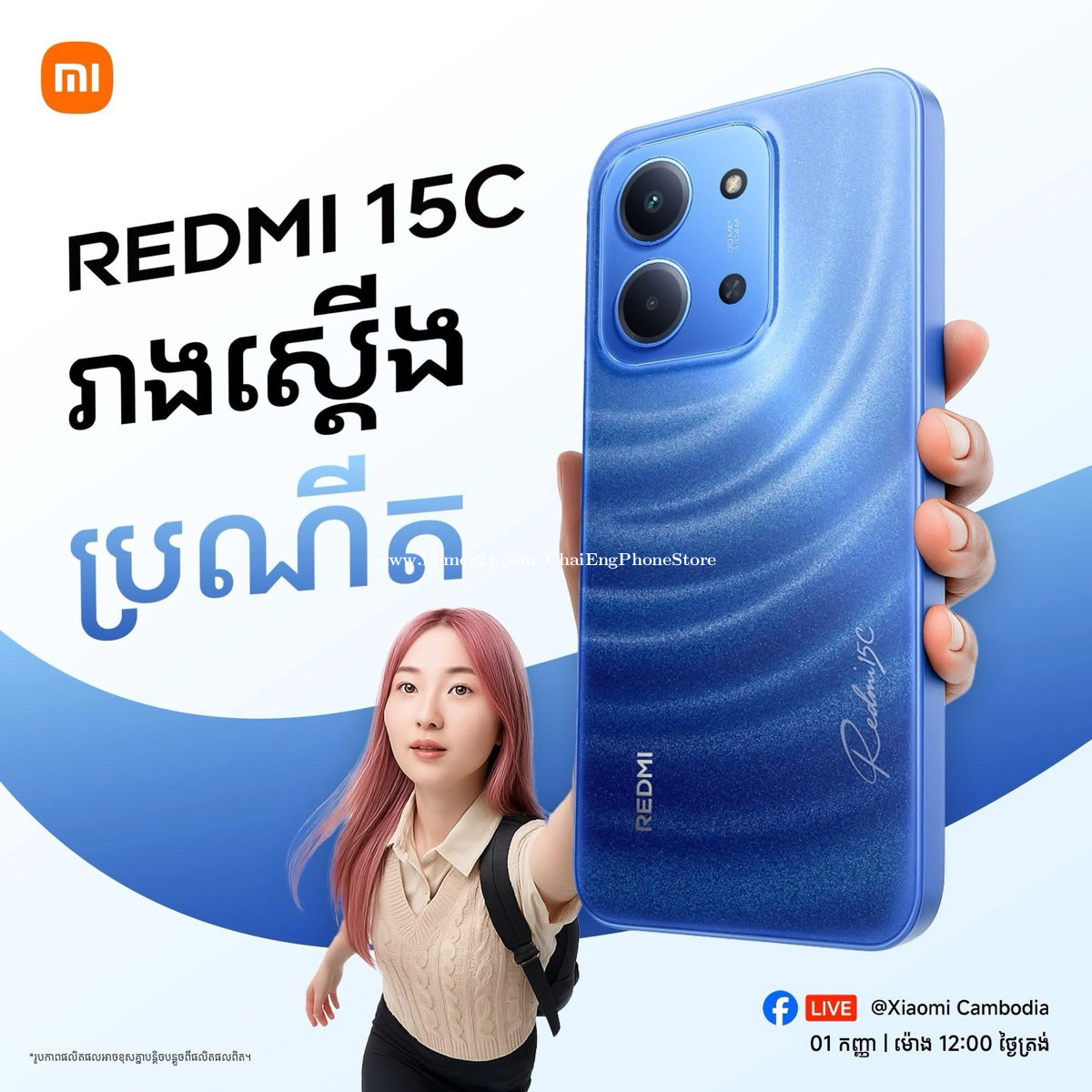 Redmi 15c Global Version ថ្មីប្រអប់មានធានាក្រុមហ៊ុន1ឆ្នាំត្រឹមត្រូវ ប្រូម៉ូសិនតម្លៃពិសេសជូន 👉 Ram4G+4G/128GB តម្លៃ 99$ ចុះសល់ 90$ 👉 Ram8G+8G/256GB តម្លៃ 119$ ចុះសល់ 109$ 👉 ថែមជូនស្រោម និង ស្គ្រីន 👉 ទិញក៏បាន | បង់រំលស់ក៏បាន | ប្រើVISA Cardក៏បាន 👉 មានសេវាកម្មដឹកជញ្ជូនដល់កន្លែងនិងផ្ញើរជូន25ខេត្តក្រុង សំរាប់ពត័មានបន្ថែមសូមទាក់ទងមកកាន់លេខទូរសព្ទ័ ☎️ 081333xxxClick To Call, 0762333xxxClick To Call, 017226xxxClick To Call, 067226xxxClick To Call 👉 Telegram Shop:☎️ 081333xxxClick To Call https://t.me/CE_PhoneShop តម្លៃពិសេសល្អមាននៅទីនេះ 🗳 សូមចុចលីង Channel Telegram : https://t.me/ChaiEngPhoneStoreCE ✅ Group Telegram: https://t.me/joinchat/LVrUvnFniQpkODBl 📍https://goo.gl/maps/KjDyGuoDN4dMjiah9 📍អាស័យដ្ឋាន ផ្ទះលេខ68BE0 ផ្លូវ215 នេរុហ៍ សង្កាត់វាលវង់ ខណ្ឌ័7មករា រាជធានីភ្នំពេញ។ នៅខាងជើងផ្សារដេប៉ូប្រហែល 500ម៉ែត្រ #ChaiEngPhoneShop #CE #ChaiEngPhoneStore2