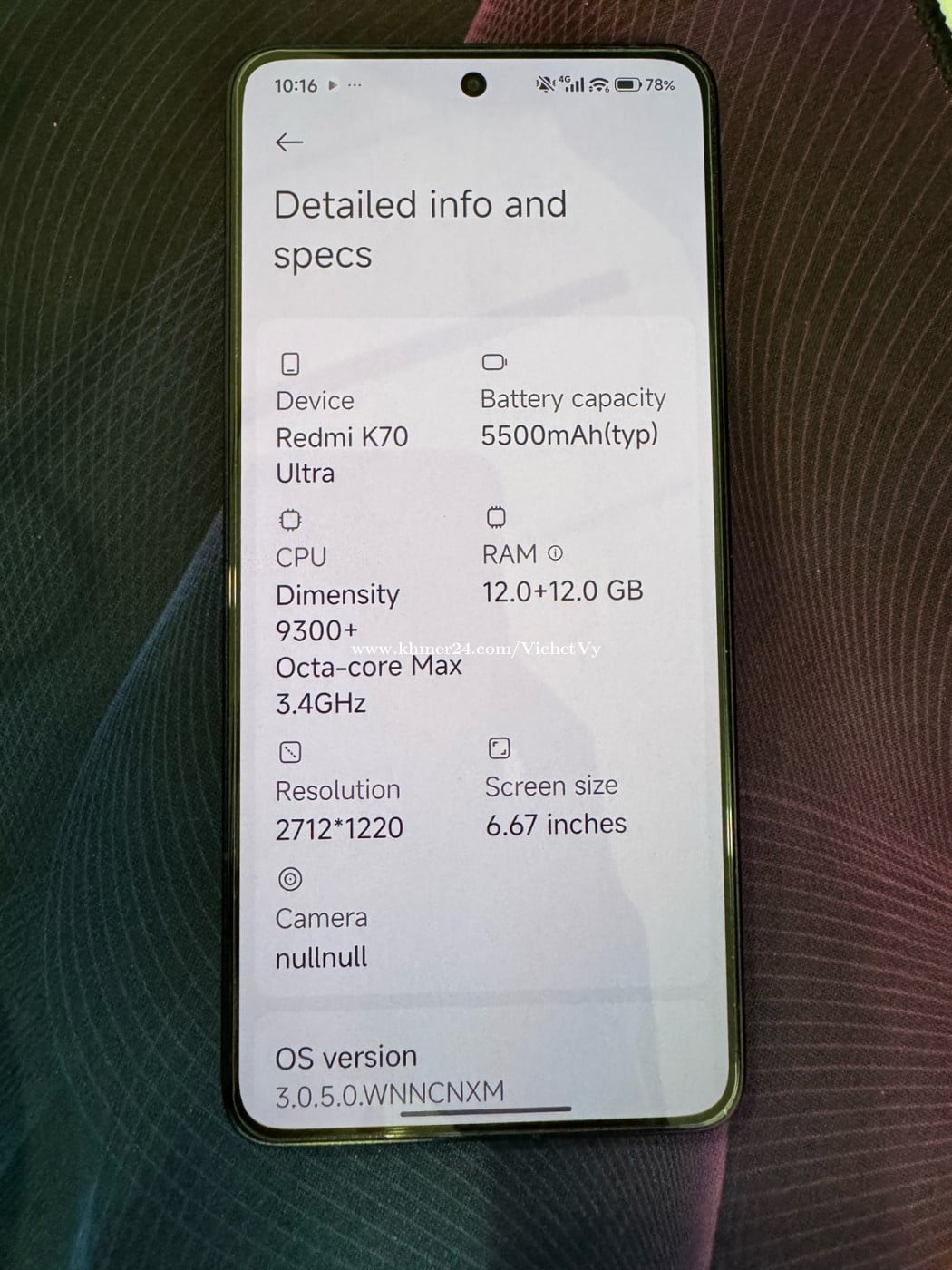 Redmi K70 ultra សនុំស្អាត 99% ទើបបិទស្រ្គីនរួច ✅អេក្រង់សុីនស្អាតផ្លឹង 144Hz ✅Chip Dimensity 9300+ antutu ជាង២លាន ✅Ram 12+12 ROM 256g ✅Battery 5,500 mAh កាន់ មានតែ ទូរស័ព្ទ ទីតាំង ភ្នំពេញ