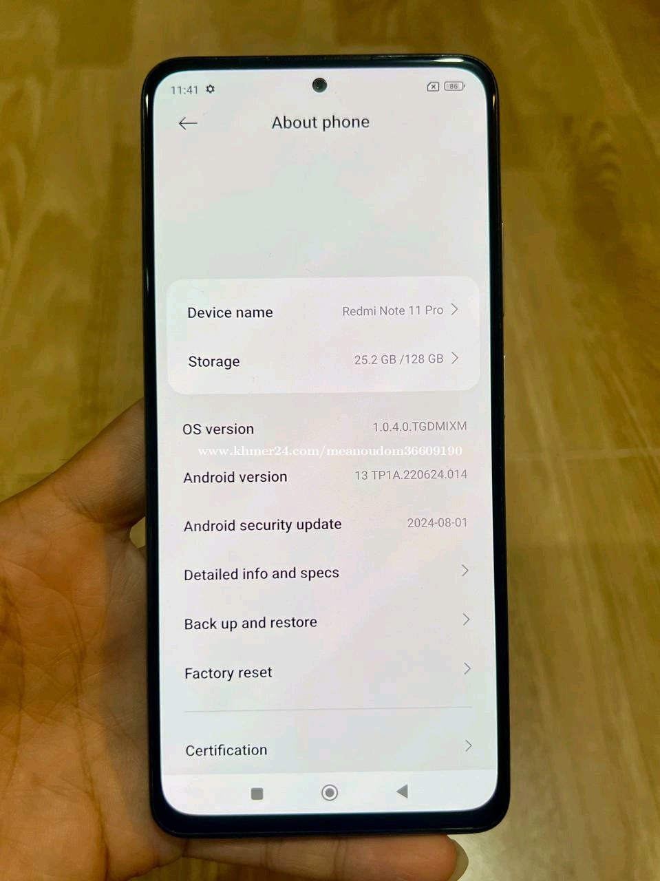 Redmi Note 11 Pro sim2 Ram 12g (8+4) Super AmoLED 6.67inch ថ្ម 5000mAh Sim 2 Camera 108 mp Display Super AmoLED 6.67inch Battery 5000mAh Ram 12g (8+4) Global Version អេក្រង់ហ្សុីនស្អាត អត់ដាន អត់មានបាក់បែក ស្ទើរតួតិចៗ