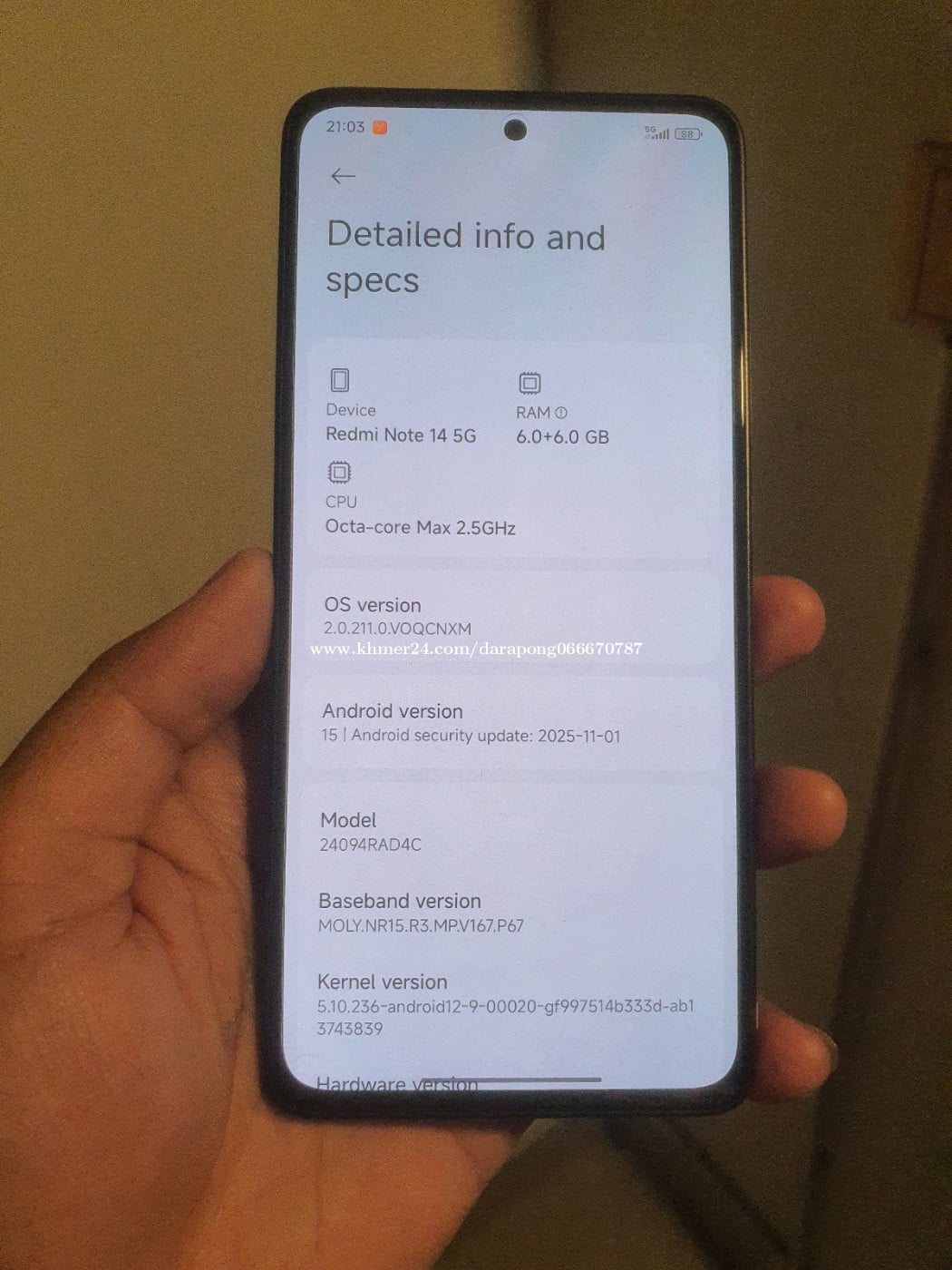 Redmi Note 14 5G China (6G+6G/128G) នៅស្អាត ថ្មកាន់ សេវាខ្លាំង
