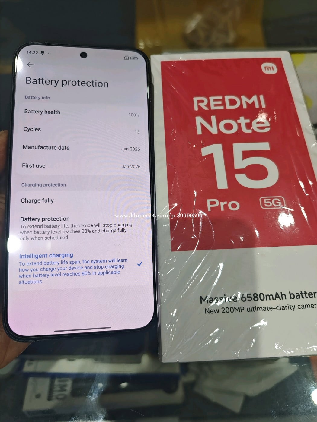 Redmi note 15 Pro 5Gមួយទឹកស្អាត 99% Ram8G/256G មានគ្រឿងគ្រប់និងប្រអប់ ហើយមនធានាក្រុមហ៊ុនទៀត។