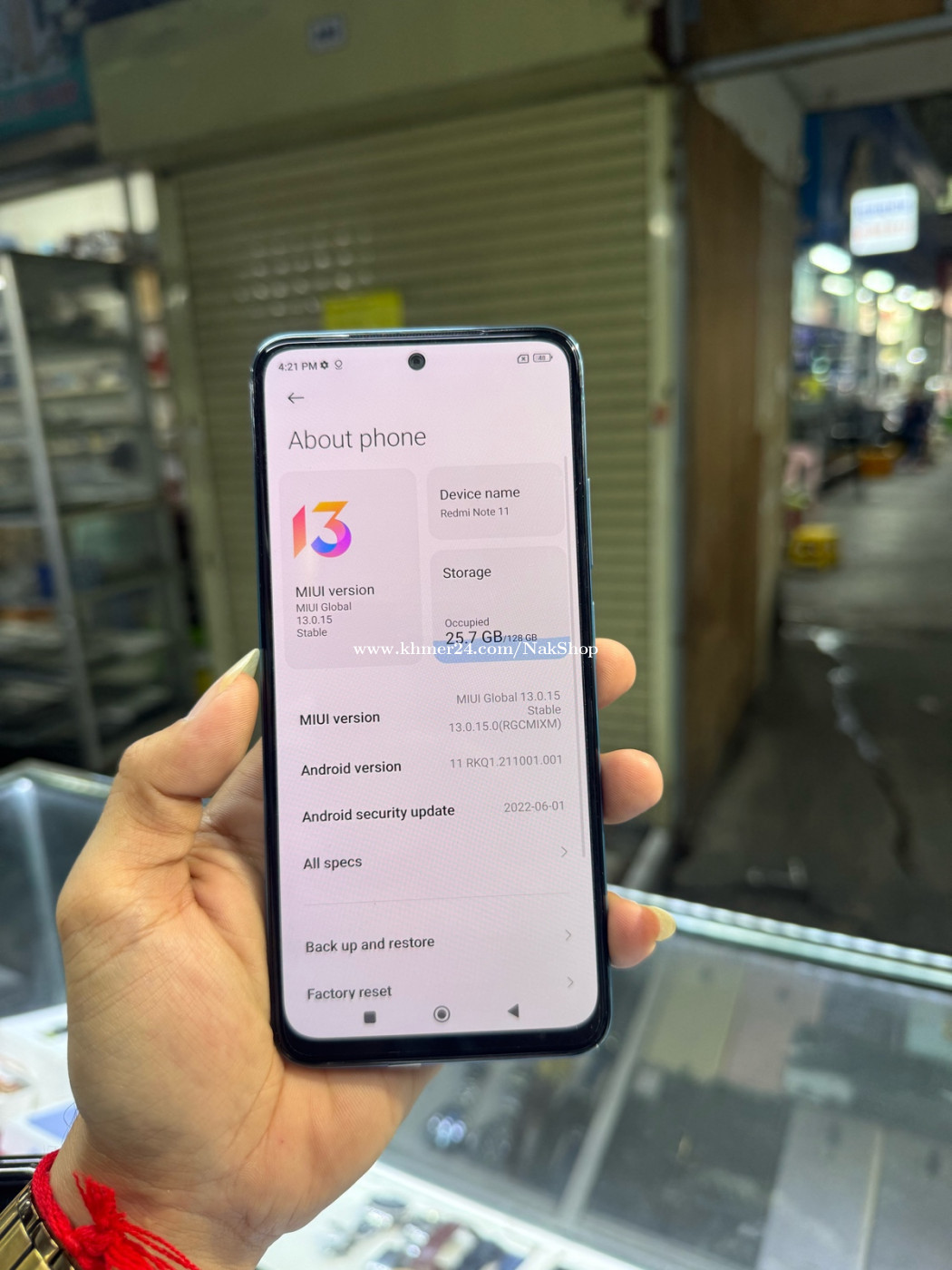 Redmi Note11 128G Ram6G Sim2 Global ម៉ាសុីនសានុំស្រុីន