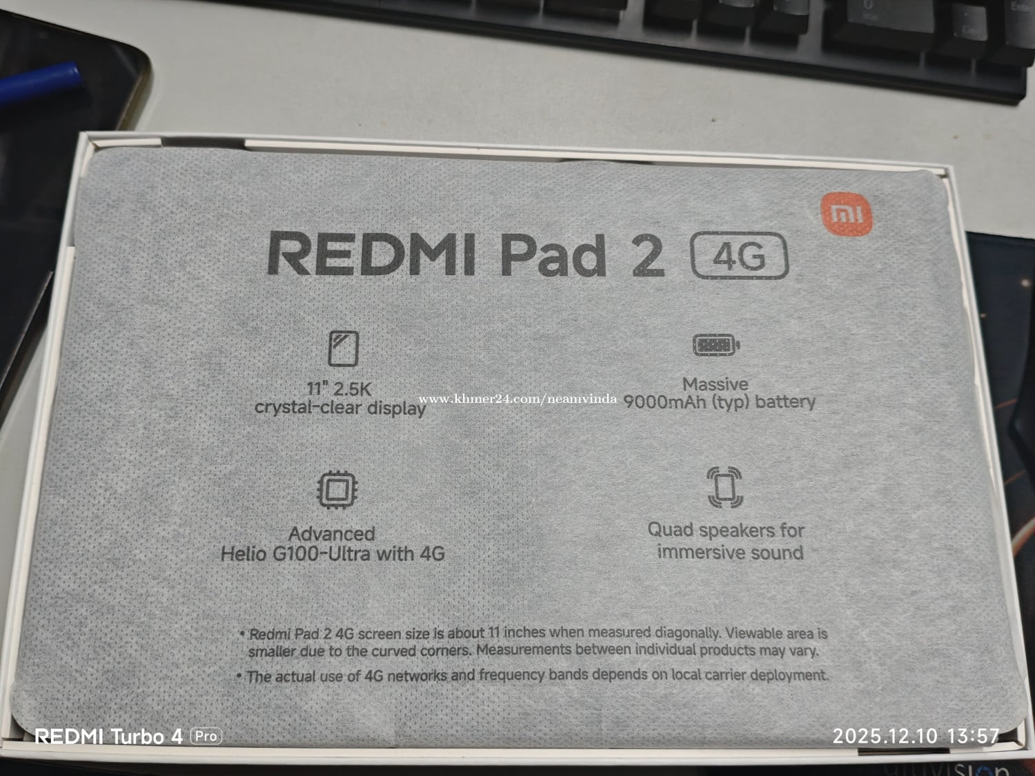 Redmi pad 2 4gទើបទិញបានពីសប្ដាហ៍ចង់លក់វិញ ប្រើស៊ីមបាន2 មិនមានស្នាមកូដ Ram 8 Memory 256GB ល្បឿនអេក្រង់90hz ល្បឿនសាក 18w ថ្ម 9000 Ah បញ្ជាក់មានប្រអប់ មានឆ្នាំងសាក នៅដូចថ្មី99%