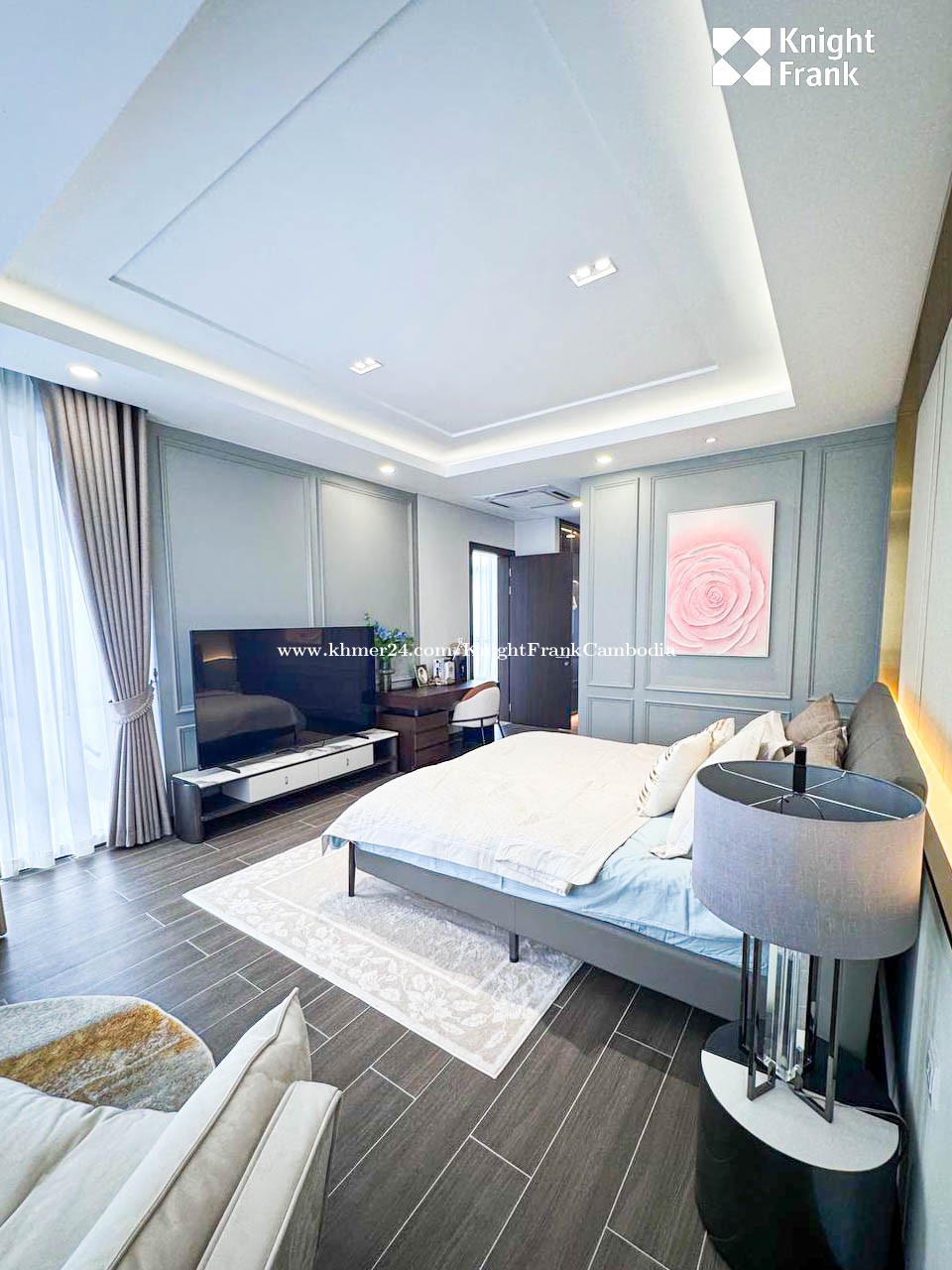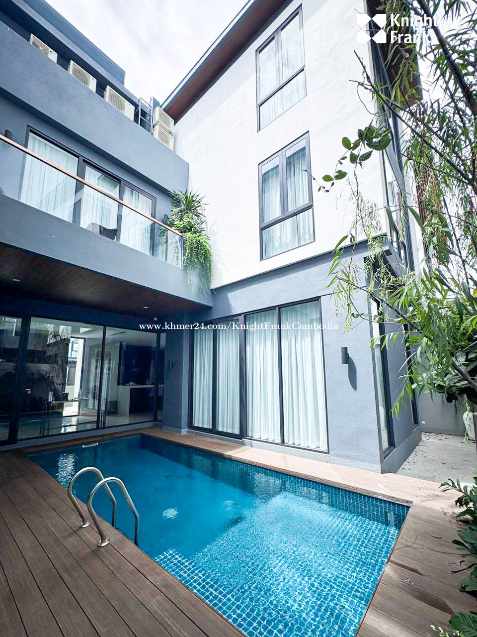 Ref: KHRA787 | Premium Villa with Private Pool – Near Aeon 3 Elegant 5-bedroom villa with private pool and garden, ideal for luxury family living. Rental Price: USD 15,000 per month Villa Size: 485.7 sqm | Land Size: 346 sqm Layout: 5 Bedrooms (1 Master), 8 Bathrooms, Maid Room, Storage Room Parking: 3 spaces Contract: 2 years | Deposit: 4 months | Advance: 3 months 别墅带私人泳池,靠近 Aeon 3 面积:485.7 平方米 | 土地:346 平方米 卧室:5(含主卧)| 浴室:8 | 保姆房 | 储藏室 | 停车位:3 位 租金:15,000 美元/月 | 合同:2 年 | 押 4 付 3 Knight Frank Cambodia Email: sok***************@kh.knightfrank.comClick To Sent Email Tel: +855 (0)92 866 069 (Telegram) | +855 (0)15 866 069 (WhatsApp) #KnightFrankCambodia #PhnomPenh #LuxuryVilla #VillaForRent #CambodiaRealEstate #PhnomPenhLiving #PropertyForLease #LuxuryLiving #PrivatePool #Aeon3