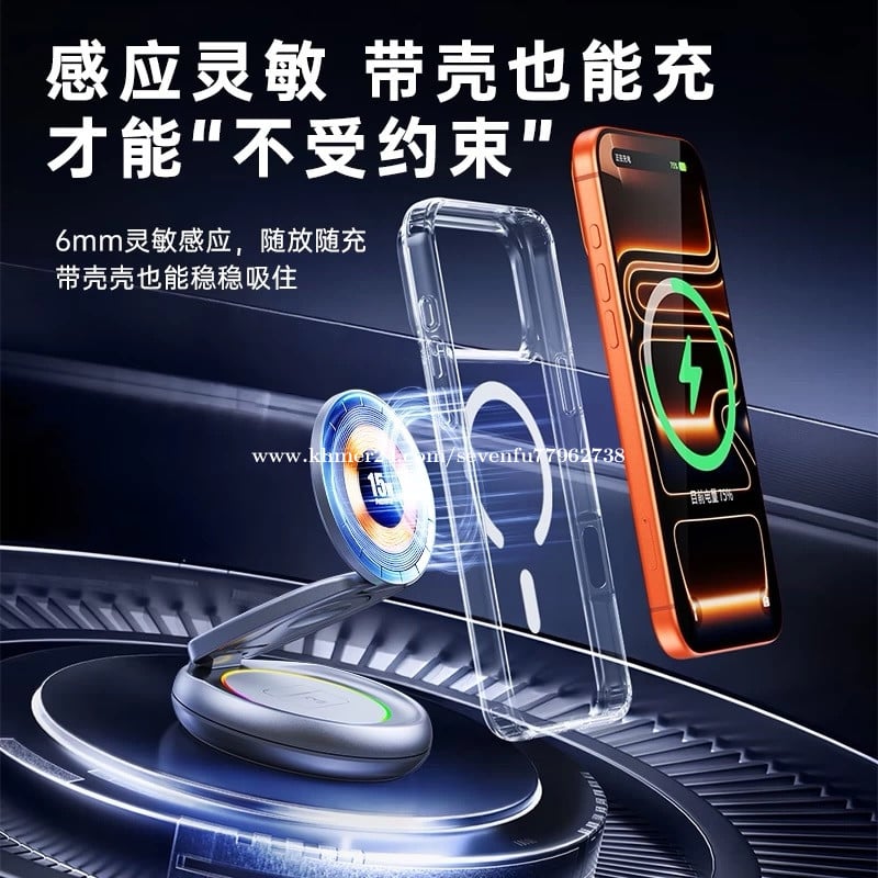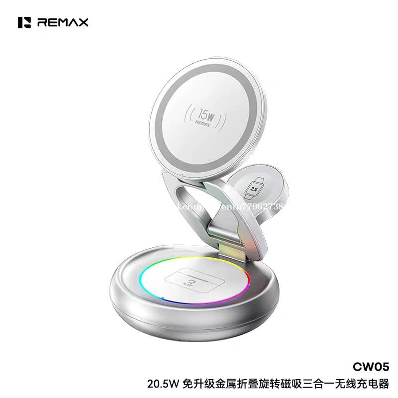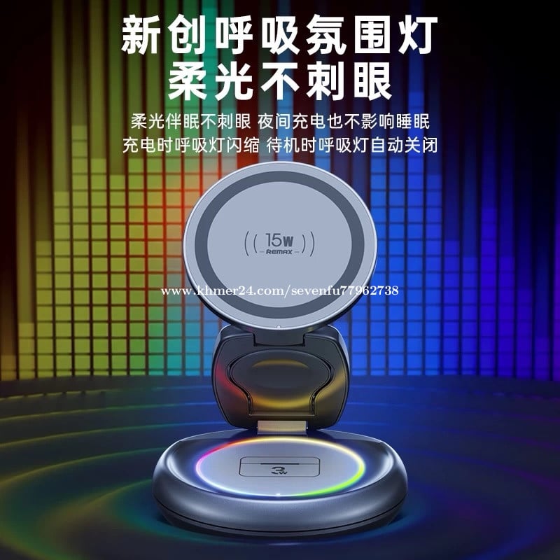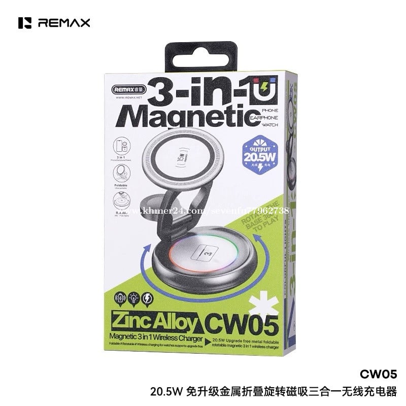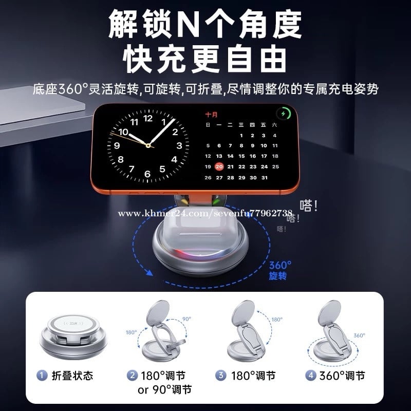 🔋 សាកឥតខ្សែ 3-in-1: សាកបាន ទូរស័ព្ទ + កាសឥតខ្សែ (Earbuds) + នាឡិកា (Watch) ក្នុងពេលតែមួយ • ⚡ កម្លាំងសាក 20.5W: សាកលឿន និងមានប្រសិទ្ធភាព • 🧲 Magnetic (ម៉ាញេទិច): ភ្ជាប់ទូរស័ព្ទបានមាំ មិនងាយរអិល • 🔄 បត់ និងបង្វិលបាន: អាចបត់/បង្វិលមុំដាក់មើលងាយស្រួល • 🧱 សម្ភារៈ Zinc Alloy: រឹងមាំ ទាន់សម័យ និងប្រើបានយូរ • 🔌 សុវត្ថិភាពខ្ពស់: ការពារកំដៅខ្ពស់ សាកលើស និងសៀគ្វីខ្លី • 📱 ឆបគ្នាជាមួយ Qi: គាំទ្រឧបករណ៍ដែលសាកឥតខ្សែតាមស្តង់ដារ Qi
