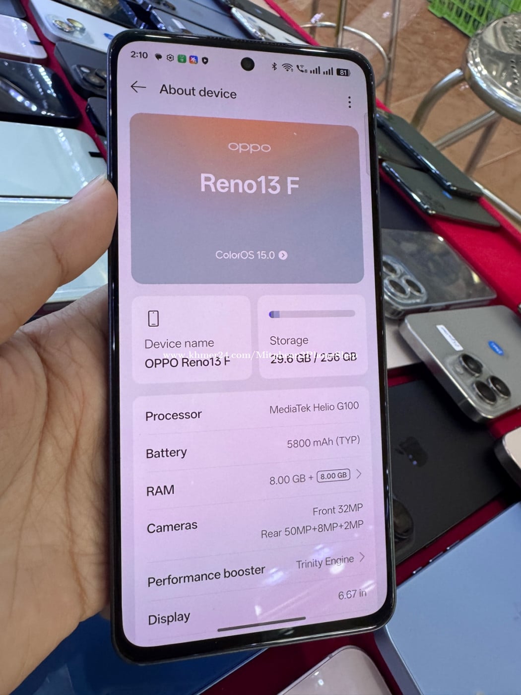 OppoReno13FមួយទឹកRam8Rom256