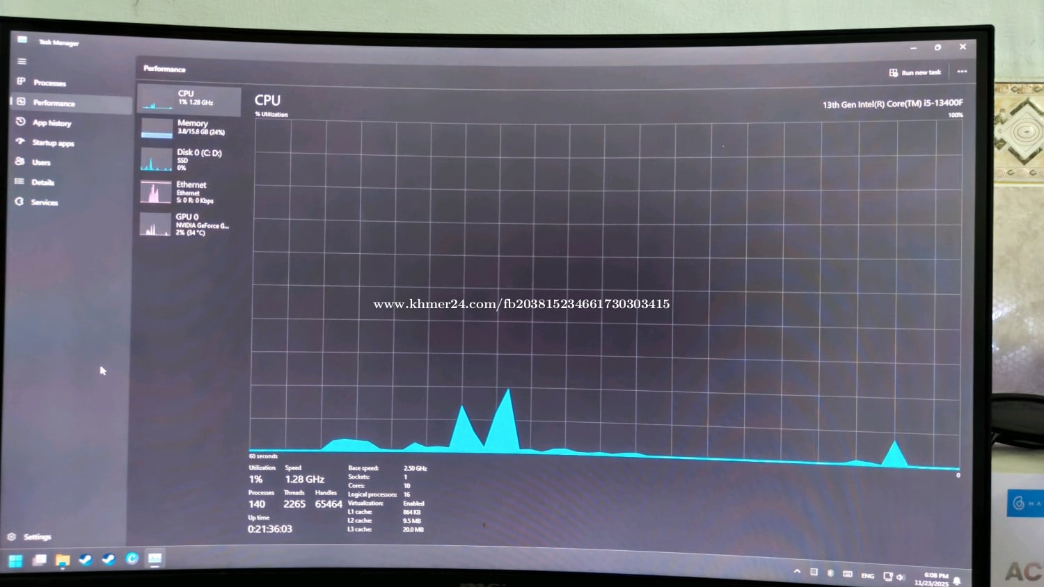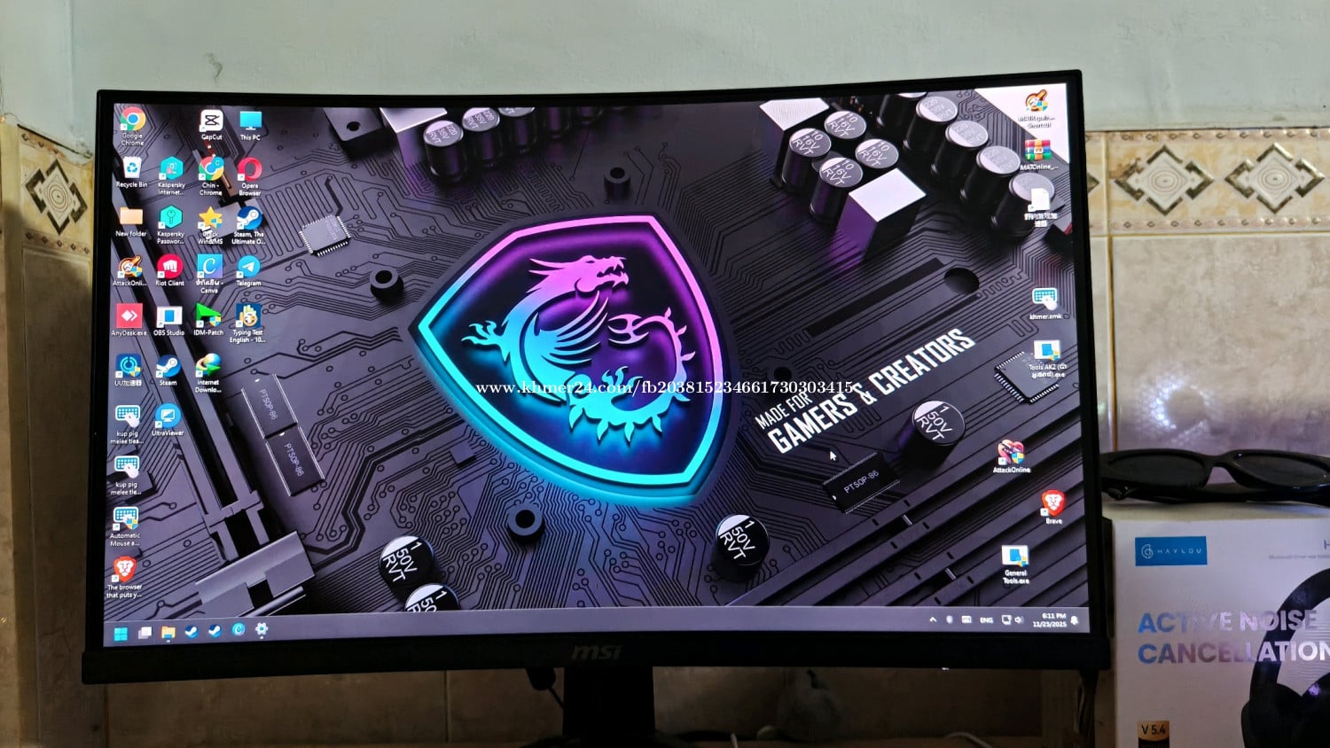 Resell computer full set ចរចារបានតិចតួច លេងហ្គេមនិង ឌីហ្សាញល្មមៗបានសុីផុយ GPU MSI RTX 1650 4GB CPU I5 generation 13 13400F 10core 16thread RAM 16GB Hard Disk M.2 ADATA LEGEND 710 512GB Monitor 24inch 165Hz ស្អាត99%