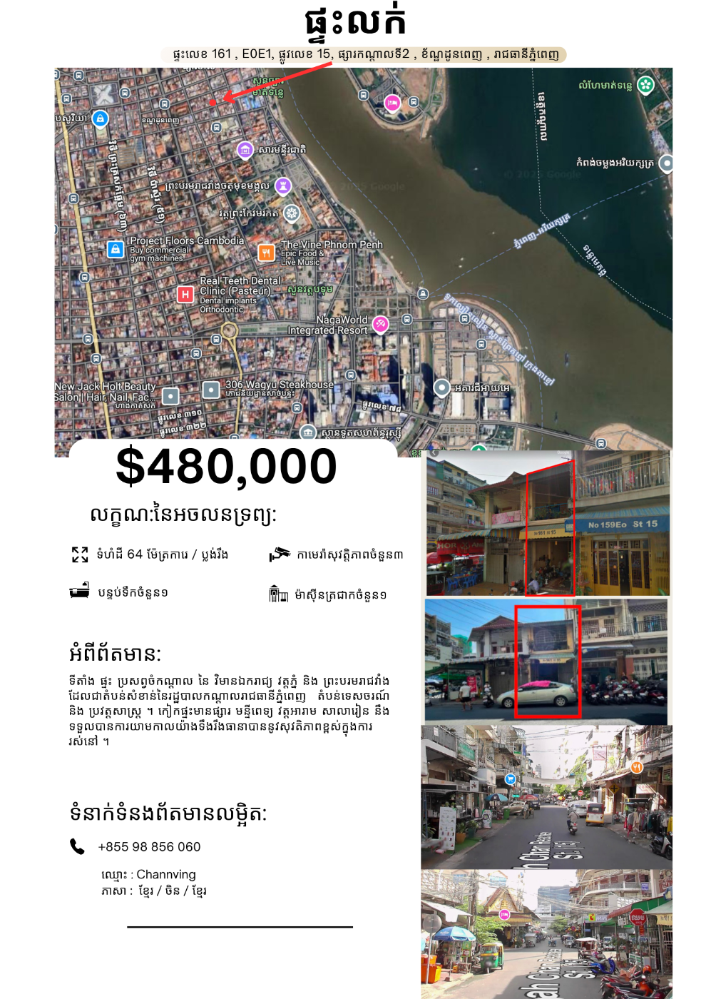 ផ្ទះអាជីវកម្មម្ចាស់ផ្ទាល់ផ្ទះអាជីវកម្មម្ចាស់ផ្ទាល់25, Oct 2025 • Doun Penh, Phnom PenhSale • more Bedroom • 1 Bathroom • 64m²$480,000