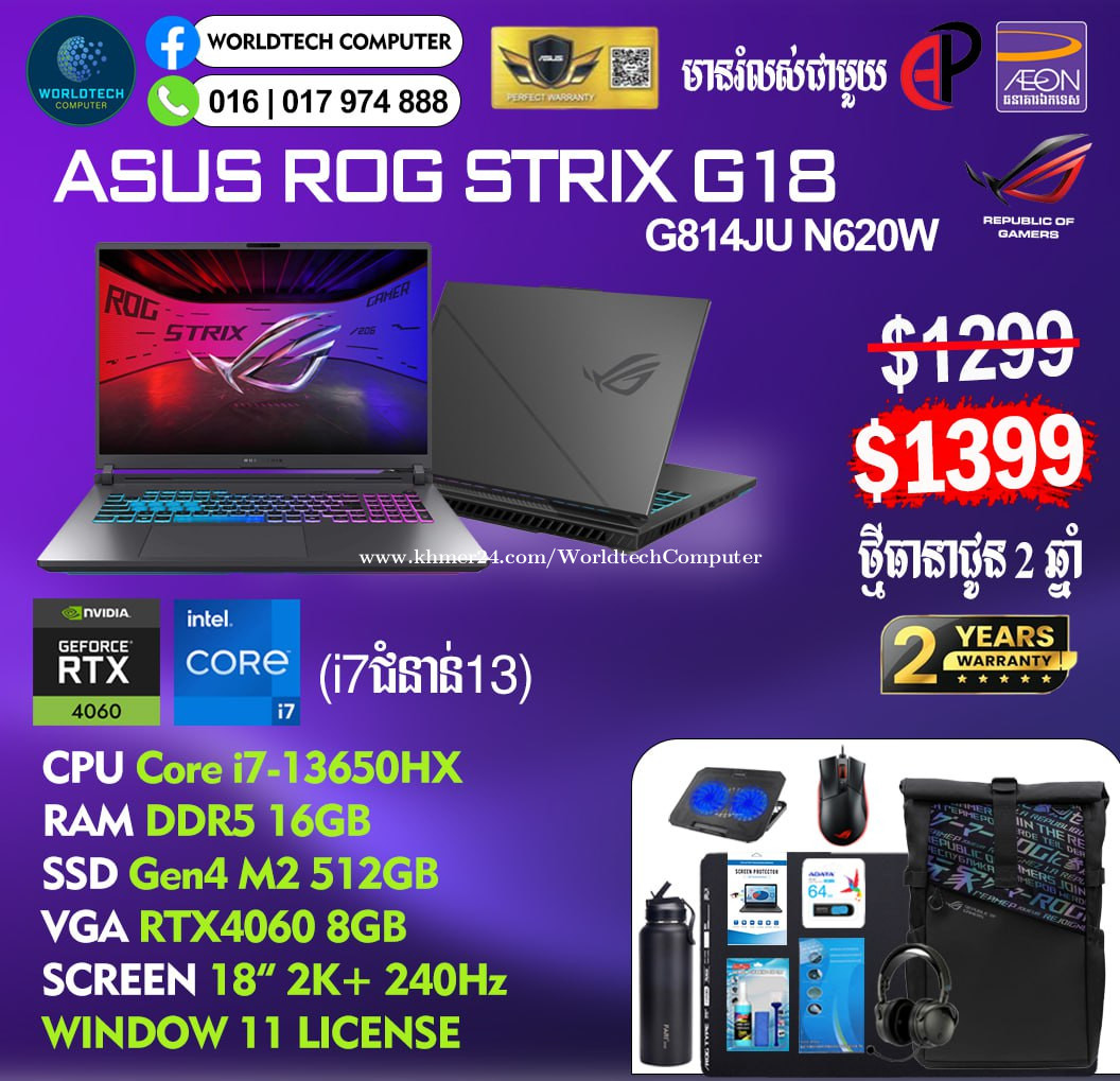 ROG G615JHR-Volt Green i7-14650HX 16G M2 1TB RTX5050 8G 16" 165Hz=1399$ ROG G615JMR-Volt Green i7-14650HX 16G M2 1TB RTX5060 8G 16" 165Hz=1499$ -New Warranty 2years (Perfect Warranty 1year) -ថែមជូនការដុរ12មុខ បិទScreenជូន -Telegram: 017974xxxClick To Call , 011777xxxClick To Call