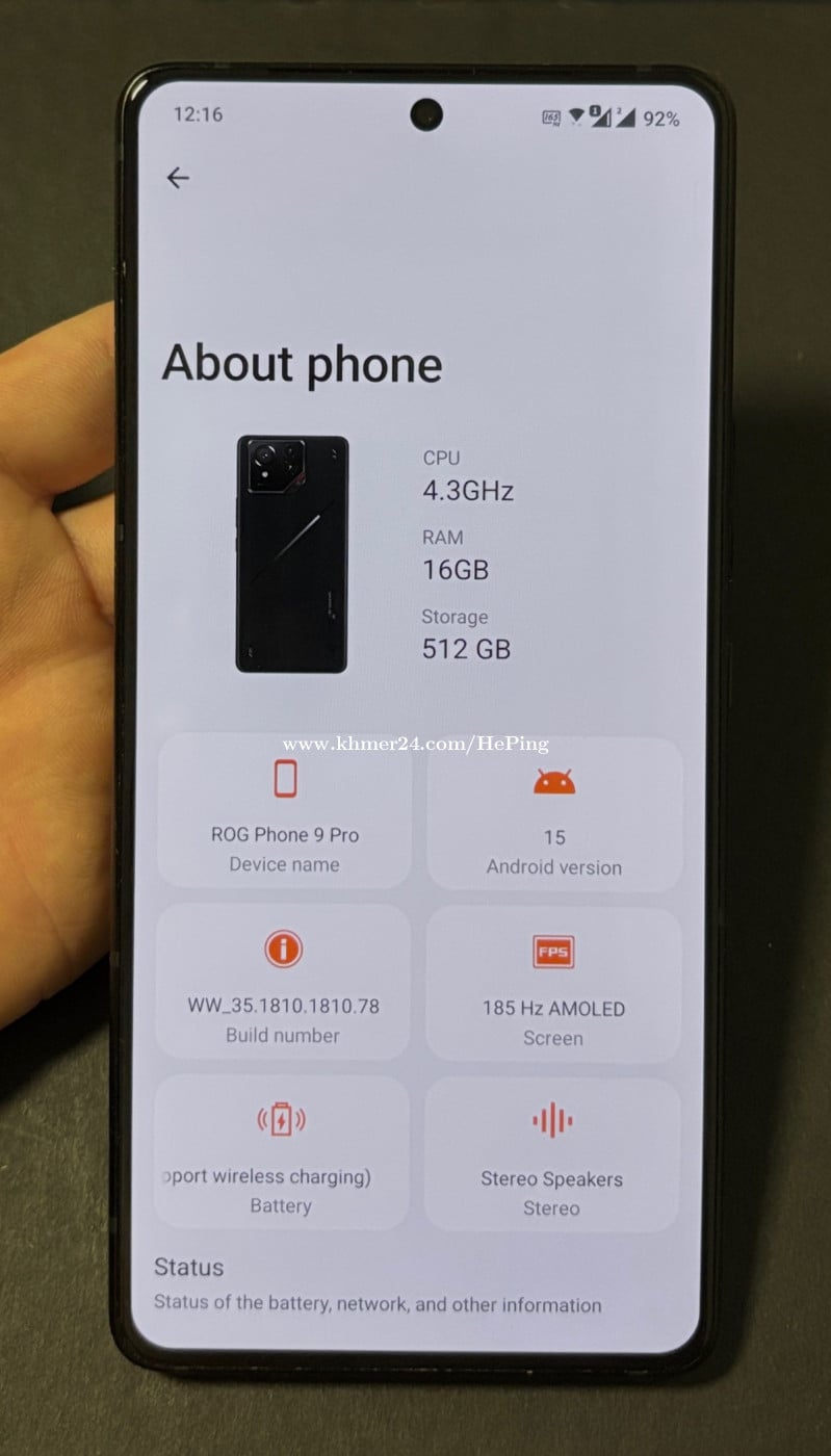 ROG Phone 9pro Global Ram 16/512g fullset,all original and all original,battery health 100%.phone + box + original charger and case sell for 700$ location Sihanoukville telegram @heping486