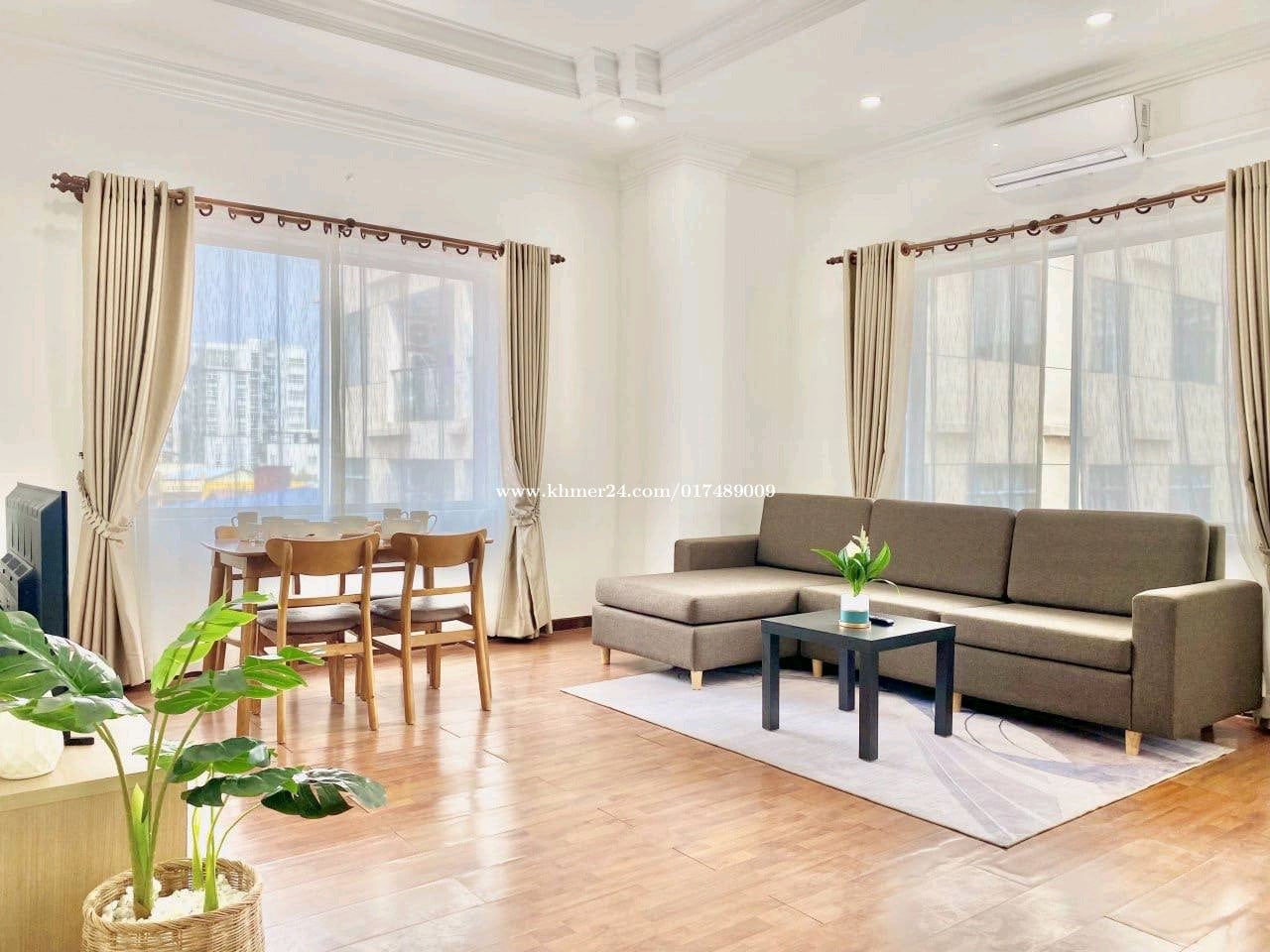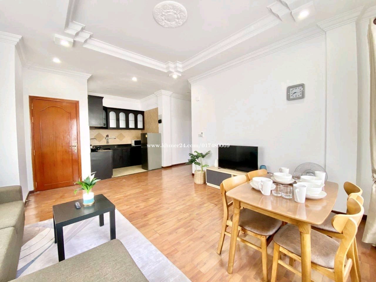 BKK1 | 4F Furnished 1 Bedroom Serviced Apartment For Rent $600 Next to Brown Coffee 57 and 5min to independence monument! - Size 65sqm - 1 King size bedroom - 1 bathroom - Living room - Spacious Balcony with View - kitchen + Dining Table - 43” Smart TV - Washing Machine - Free Internet and Cable TV - Free Managment Fee - Security 24hours - Free Cleaning weekly - Gym - Elevator and Backup Generator Location : BKK1
