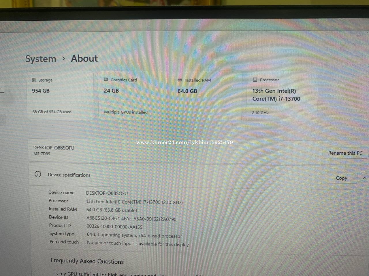 ๐ฅฐ Ultimate High-End PC Build โ RTX 4090 | i7 13th Gen | 64GB RAM ๐ฅ Monster Power for Gaming, AI, and Editing โ 99.99% New ๐ Specifications: ๐ง CPU: 13th Gen Intelยฎ Coreโข i7โ13700 (16 Cores / 24 Threads, Turbo up to 5.2GHz) ๐ฅ GPU: NVIDIA GeForce RTX 4090 โ 24GB GDDR6X (Top-tier for gaming, AI & 3D rendering) ๐พ Memory: 64GB DDR4 RAM โ Perfect for multitasking, 3D design, and heavy workloads ๐ฝ Storage: 1TB NVMe SSD โ Ultra-fast for loading games, software, and OS โ๏ธ Condition: 99.99% New, fully functional, clean build & ready to plug and play ๐น Perfect For: ๐ฎ 4K/8K Gaming with Max Settings & Ray Tracing ๐ฅ 4K+ Video Editing, VFX, 3D Rendering (Blender, Premiere Pro, etc.) ๐ค AI Development, Deep Learning, Large Language Models ๐ Engineering, CAD, Architecture & More ๐ธ Extras: โ Beautiful clean build with strong airflow โ Quiet and powerful cooling system โ Can add monitor, keyboard, mouse, or custom case if needed ๐ FREE DELIVERY (Phnom Penh area) ๐งฐ Test available before purchase! 100% satisfaction guaranteed ๐ฒ Contact Now: ๐ Telegram: https://t.me/LykhimKin ๐ Cellcard: 092306xxxClick To Call ๐ Smart: 087417xxxClick To Call