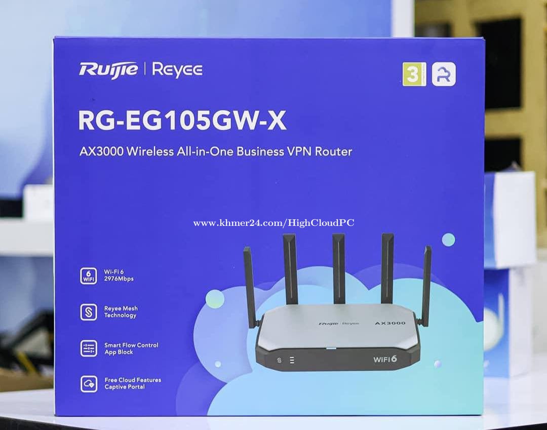 តម្លៃក្នុង (in Telegram) https://t.me/highcloudpc +RG-RAP62= 79$(AP Only), -RG-POE-AT30=19$(Adapter) +RG-RAP2200(E)= 60$(AP Only), -RG-POE-AF15=15$(Adapter) +RG-RAP2260(G)= 89$(AP Only), -RG-POE-AT30=19$(Adapter) +RG-RAP2260(E)= 185$(AP Only) 👉Wifi 6 AX3200 -RG-POE-AT30=19$(Adapter) +Ruijie RG-AP820-L(V3) Wi-Fi 6 Indoor Wireless Access Point =125$ -POE Adapter Ruijie (130GE) 53.0V=0.6A =25$ +Ruijie RG-EW3000GX 3000M Wi-Fi 6 Dual-WAN Gigabit Router = 65$ +Ruijie RG-EW3200GX PRO 3200M Wi-Fi 6 Dual-band Gigabit Mesh Router = 105$ +Ruijie | Reyee (RG-EG105GW-X) Wi-Fi 6 AX3000 High-performance All-in-One Wireless Router =135$ +Ruijie RG-EW1200G PRO 1300M Dual-band Gigabit Wireless Router = 49$ 🚚🚚🚚🚚🚚🚚🚚🚚🚚🚚🚚 If Delivery 🚚 +2$ In Phnom Penh. 🚚🚚🚚🚚🚚🚚🚚🚚🚚🚚🚚 Address/Location/Map ជាប់ (PTT) ផ្លូវ St.28, Sangkat Kouk Khleang, Saensokh, Phnom Penh. Smart/Cellcard 010/012793xxxClick To Call | https://t.me/highcloudpc Smart/Telegram 098269xxxClick To Call | https://t.me/HighCloud98