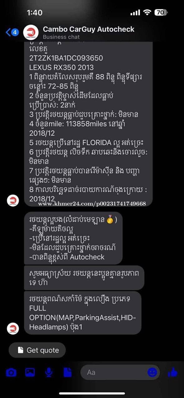 Lexus RX 350 ឆ្នាំ 2013 ប៉ុង1 ហ្វូលពេញ ក្នុងលឿងឡានការលី🥇ធានាឡានស្អាតថ្មីខ្លាំងអត់បុកអត់ច្រេសសាណុំស្រុីនមួយជុំ🥇ទិញដាច់វ៉ៃដូរបង់រំលស់គ្រប់ខេត្តក្រុង 💵តំលៃចរចារបានបងប្អូន ☎️069300xxxClick To Call/078300xxxClick To Call📲 🏡 https://www.facebook.com/share/p/1793PQEvq2/🙏😘