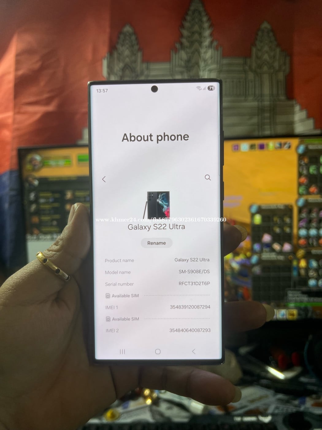 S22 ultra / ram12g c / 256g / ក្រុមហ៊ុនសុីម 2 / ស្កេនមុខស្កេនក្រយ៉ៅដៃ បែកខ្នងក្រោយបន្តិចដូចរូប ថ្មកាន់ camara ថតច្បាស់មុខក្រោយ ធានាអេក្រង់ហ្សុីន 120Hz ស្អាតផ្លឹងធានាម៉ាសុីនមិនធ្លាប់ជទុសជុល លក់តំលៃក្រោមទីផ្សារនៅកម្ពុជា 🇰🇭 295$ ដាច់ ☎️📞0968911xxxClick To Call telegram📞☎️