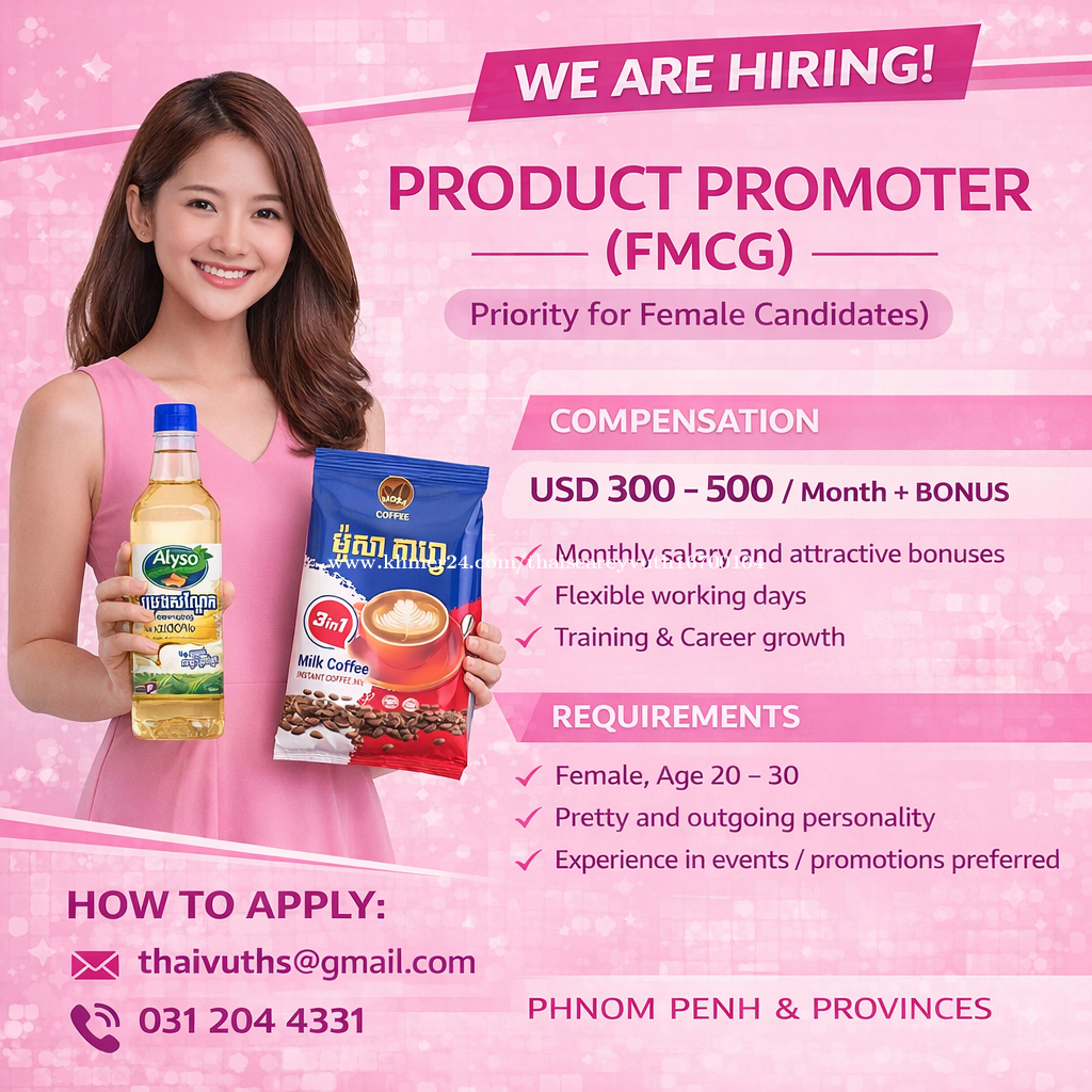 ๐ JOB DESCRIPTION โ SALES EXECUTIVE (FMCG) Position: Sales Executive / Field Sales Department: Sales Location: Phnom Penh / Provincial areas Reports to: Sales Supervisor / Sales Manager ________________________________________ ๐ฏ Position Purpose Responsible for developing and managing retail points (traditional trade, grocery stores, mini-marts, cafรฉs) to distribute FMCG products including: โข Soybean oil โข Coffee 3in1 โข Laundry detergent โข Liquid detergent โข Dishwashing liquid โข Soy sauce The role focuses on expanding distribution, increasing product visibility, and driving sell-out at retail points. ________________________________________ ๐งฉ Key Responsibilities 1. Visit retail stores daily according to assigned routes. 2. Identify and open new retail accounts. 3. Present products, pricing, and promotions to store owners. 4. Place and follow up orders; ensure timely delivery and payment. 5. Install and maintain in-store materials (POSM) to enhance visibility. 6. Monitor sales performance and encourage reorder. 7. Collect market feedback and competitor information. 8. Submit daily activity and sales reports. ________________________________________ ๐ Expected Performance Indicators (Guideline) (Reference expectations โ not rigid quotas) โข ~20 store visits per day โข ~4 new stores opened per day โข POSM installed in ~3 stores per day โข Active reorder maintained โข Minimum product assortment per store ________________________________________ ๐ค Requirements โข Female candidates are strongly preferred โข Age 20โ35 โข Own motorbike and smartphone โข At least 1 year experience in FMCG / retail field sales โข Familiar with grocery stores, traditional trade, or convenience store channels โข Good communication and negotiation skills โข Honest, disciplined, proactive ________________________________________ ๐ฐ Compensation & Benefits โข Base salary: 250 โ 300 USD / month (depending on experience) โข Sales bonus & commission based on performance โข Transport & phone support (if applicable) โข Training & career development opportunities ________________________________________ โฐ Working Time โข Monday to Saturday, 8:30 AM โ 5:30 PM (flexible for field work) โข Sunday off โข Field-based role ________________________________________ ๐ฉ Application Please send your CV or personal details to: Email: tha******@gmail.comClick To Sent Email Telegram: 0312044xxxClick To Call