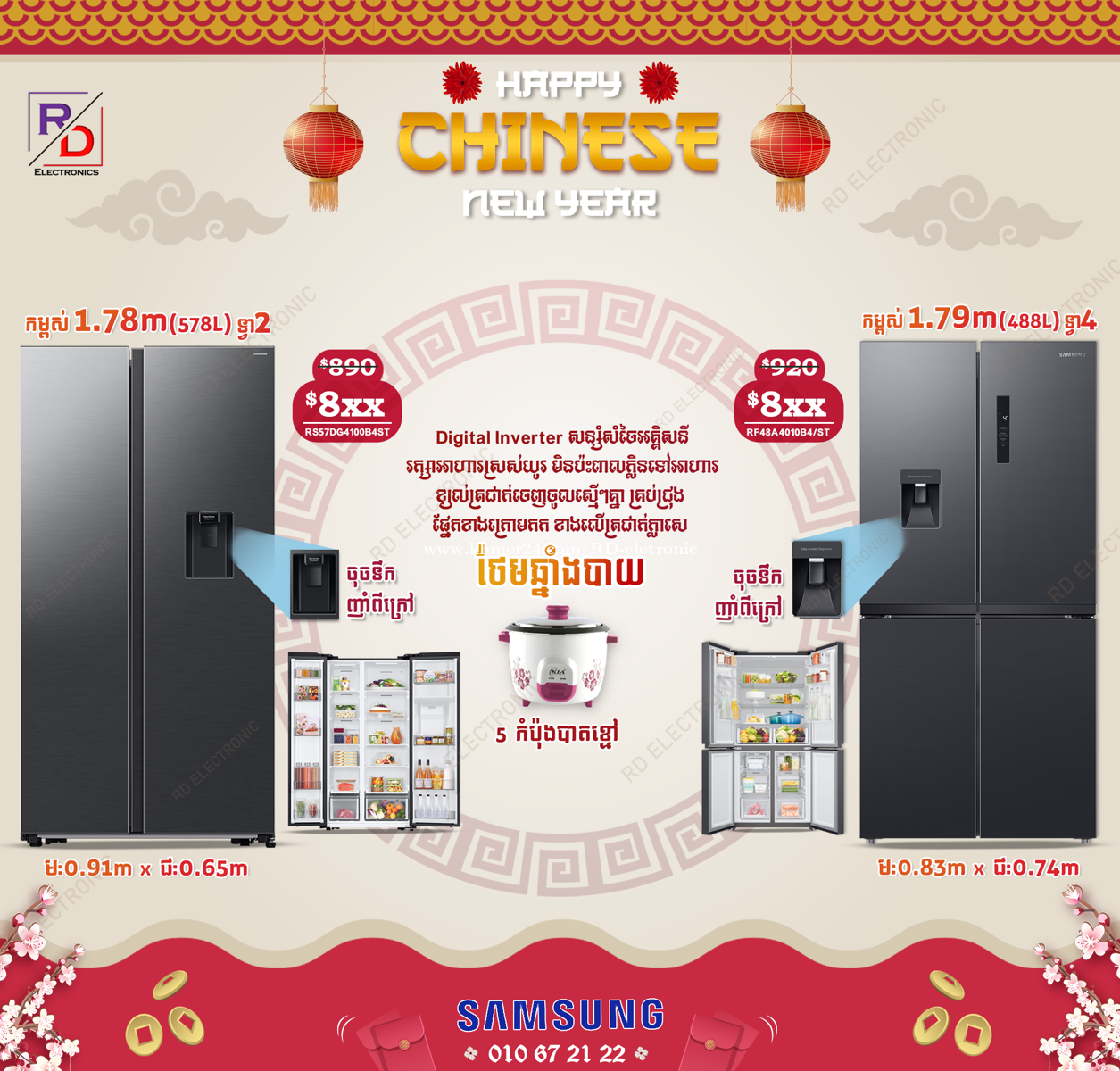 Samsung ទ្វា៤ ទើបចេញថ្មី មានចុកទឹកផឹកបាន ធានា១ឆ្នាំ ដល់ ២០ឆ្នាំ