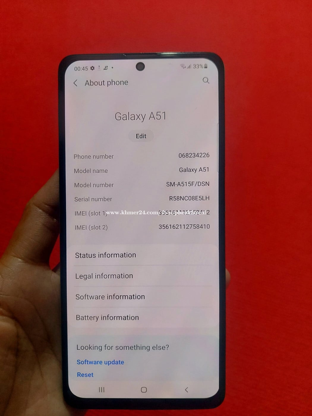 Samsung A51 Ram 8G Rom 128G Sim2 សេវាខ្លាំង ថ្មកាន់ សំបករូបរាងដូចរូបភាព #បញ្ហា ស្ទើកាំមេរ៉ាមុខ ចូលដីអាចសំអាតបាន តម្លៃ 50$ ទីតាំង ភ្នំពេញ ក្រោយផ្សារអូឌឹម 093264xxxClick To Call 092636xxxClick To Call សូមអរគុណ 🙏