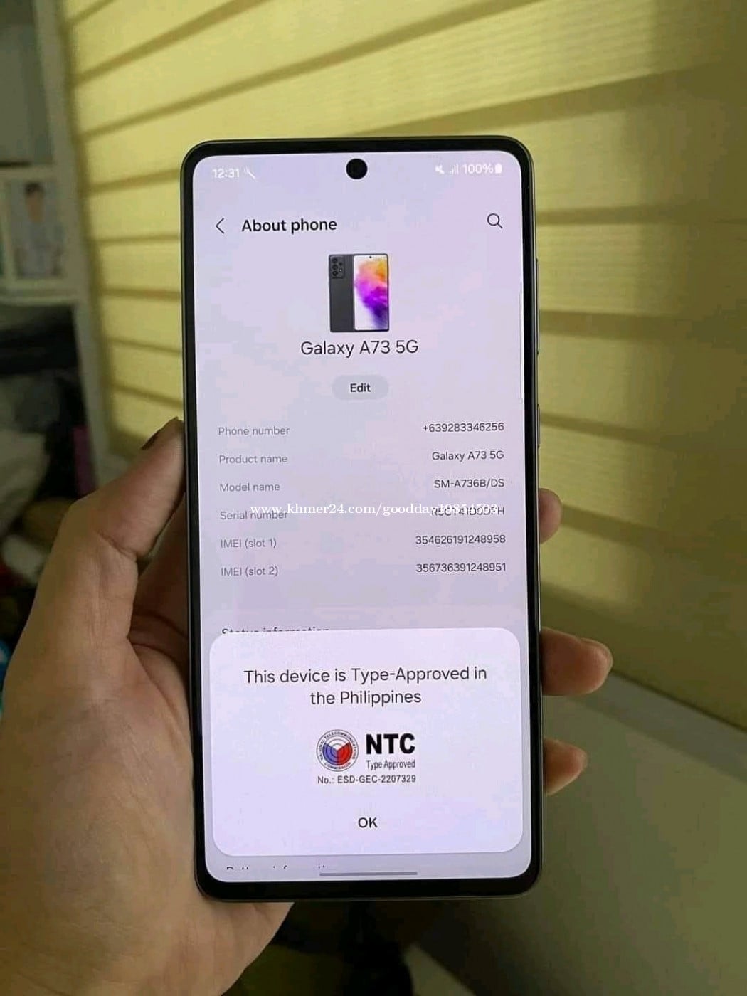 Samsung A73 5G ក្រុមហ៊ុន Sim2 128GB Ram8+8 សុីនសុំណុំ ស្អាត99% អេក្រង់ធំ ម៉ាស៊ីនល្អ ថ្មកាន់ ស្កេនមុខ ស្កេនក្រយៅដៃ
