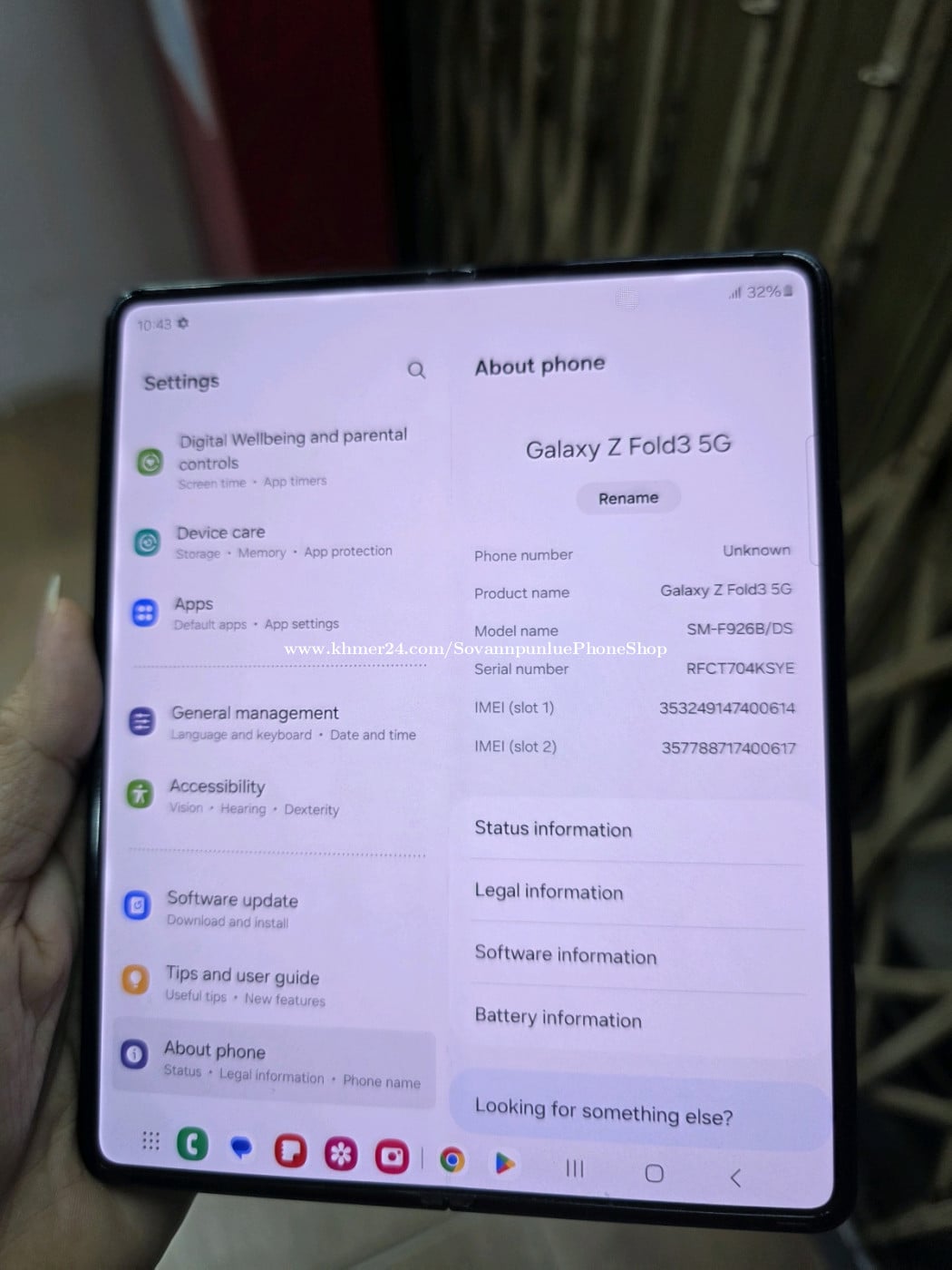 Samsung Fold 3 5G sim2 ram12G/256G អេក្រង់ក្រៅមានឆ្នូត តែអេក្រង់ក្នុងស្អាតផ្លឹង ធានាស៊ីនសំណុំ សេវាខ្លាំង ថ្មកាន់ ថតស្អាត internet លេងអត់ក្តៅ បងប្អូនណាចាប់អារម្មណ៍មាននៅហាងពេជ្រសុវណ្ណពន្លឺ នឹងហាងសុវណ្ណឧត្តម tel: 081335xxxClick To Call/ 017553xxxClick To Call