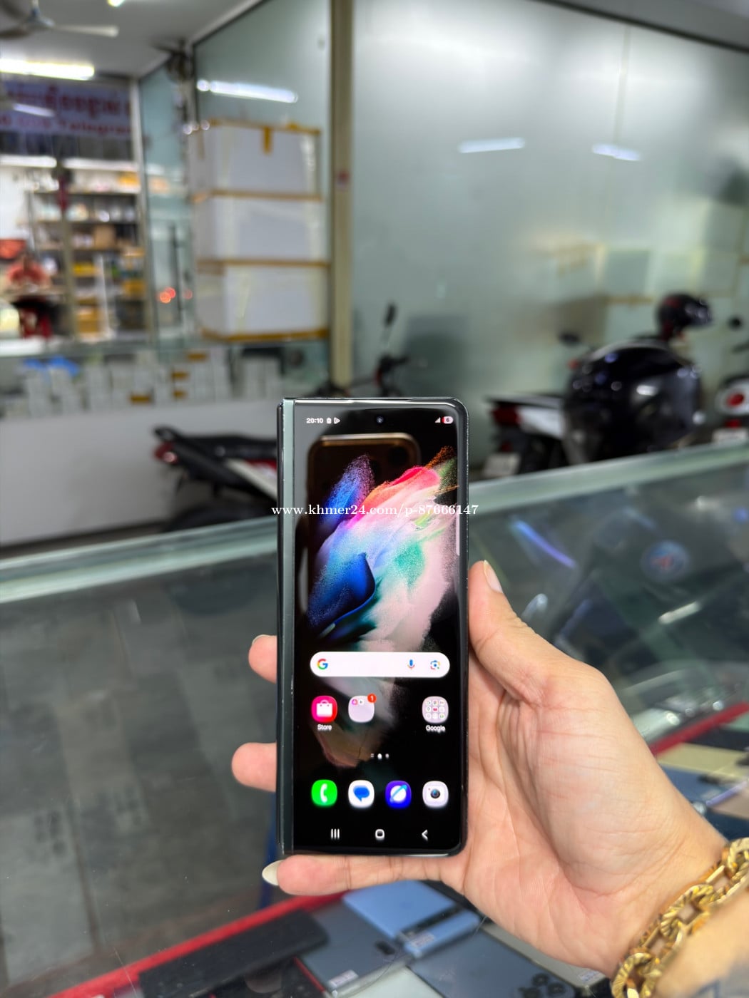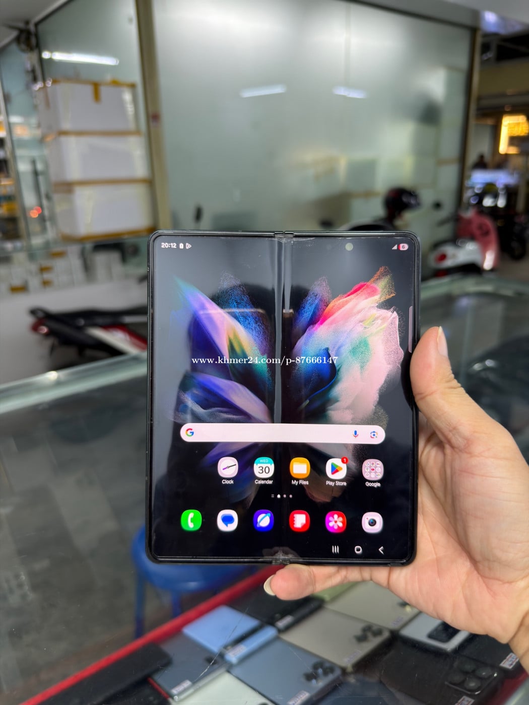 Samsung Fold 3 Company Sim2 Ram12G HD256GB Phone Condition 96% , ទាក់ថាច់អេក្រង់ក្រៅបន្តិច , អេក្រង់ក្នុងស្អាត