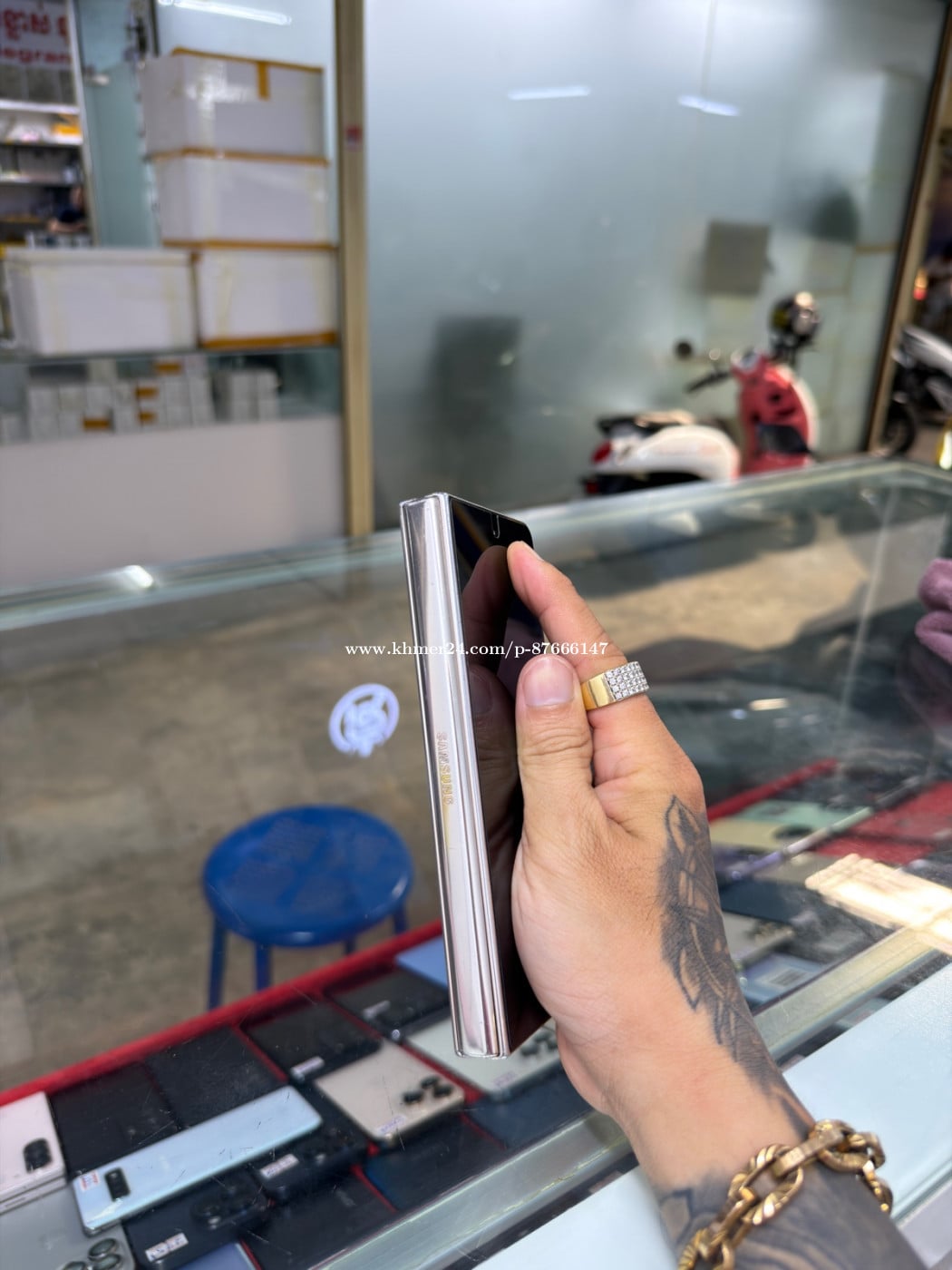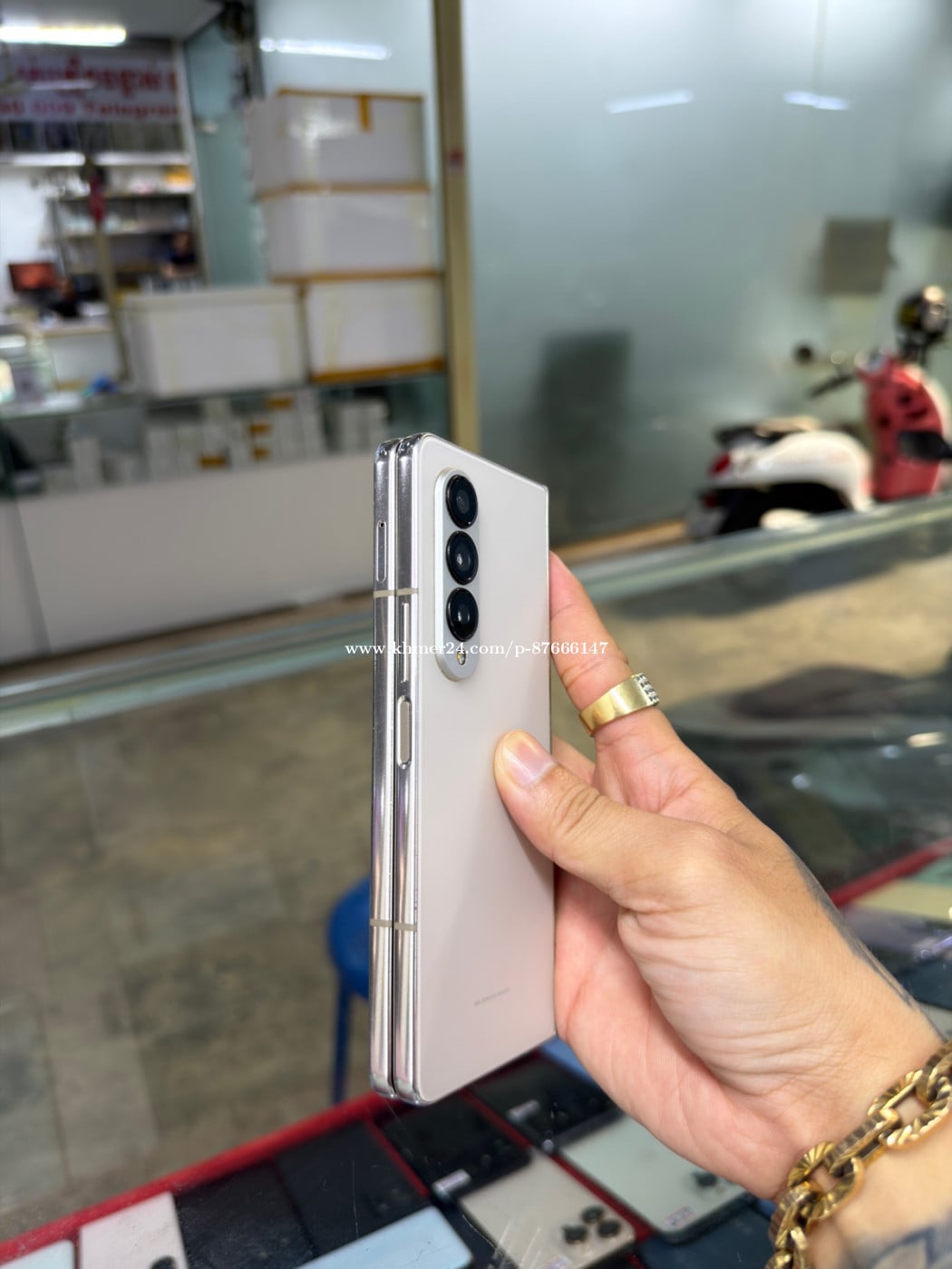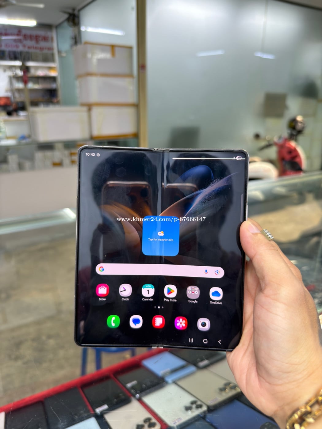 Samsung Fold 4 Company Sim2 Ram12GB HD256GB Phone Condition 90% ឆ្នូតអេក្រង់ក្រៅ , ខូចអេក្រង់ក្នុង