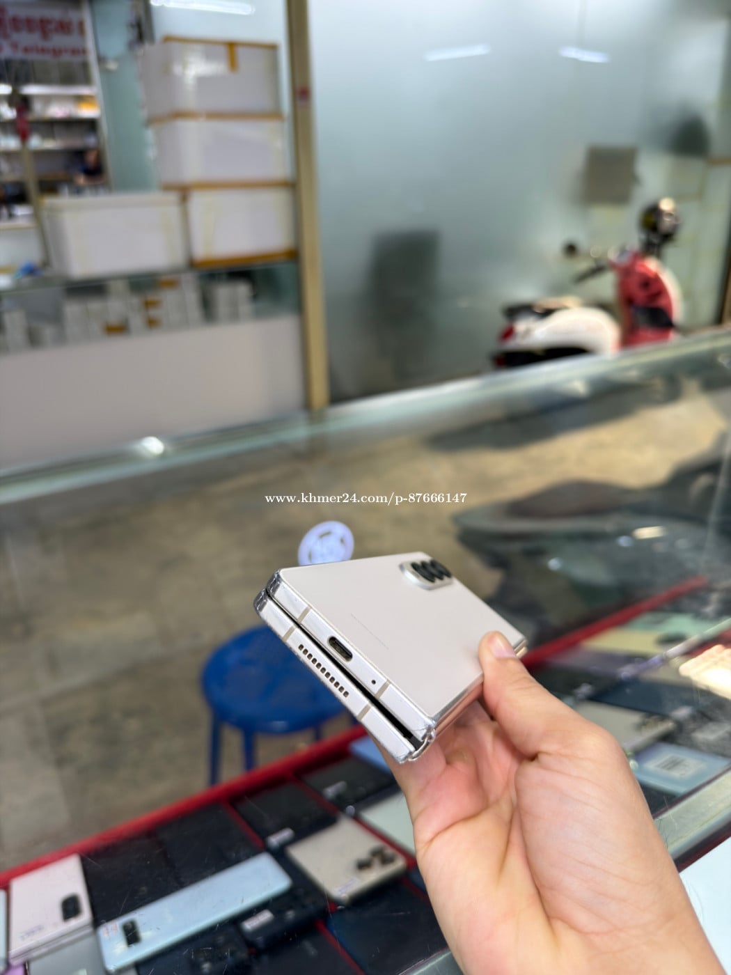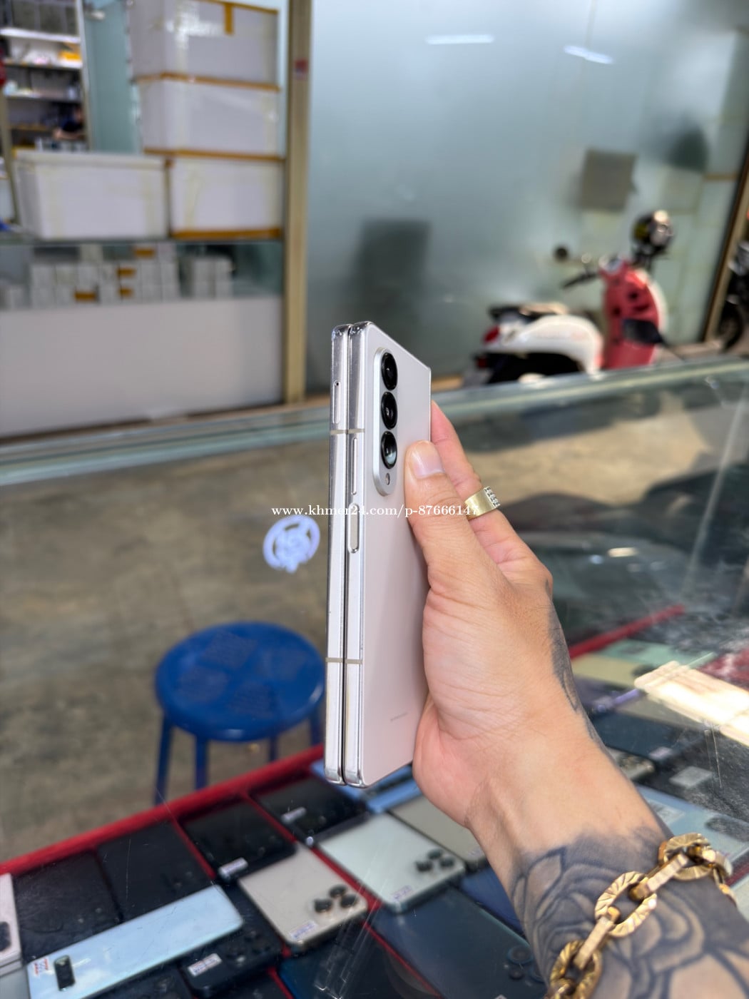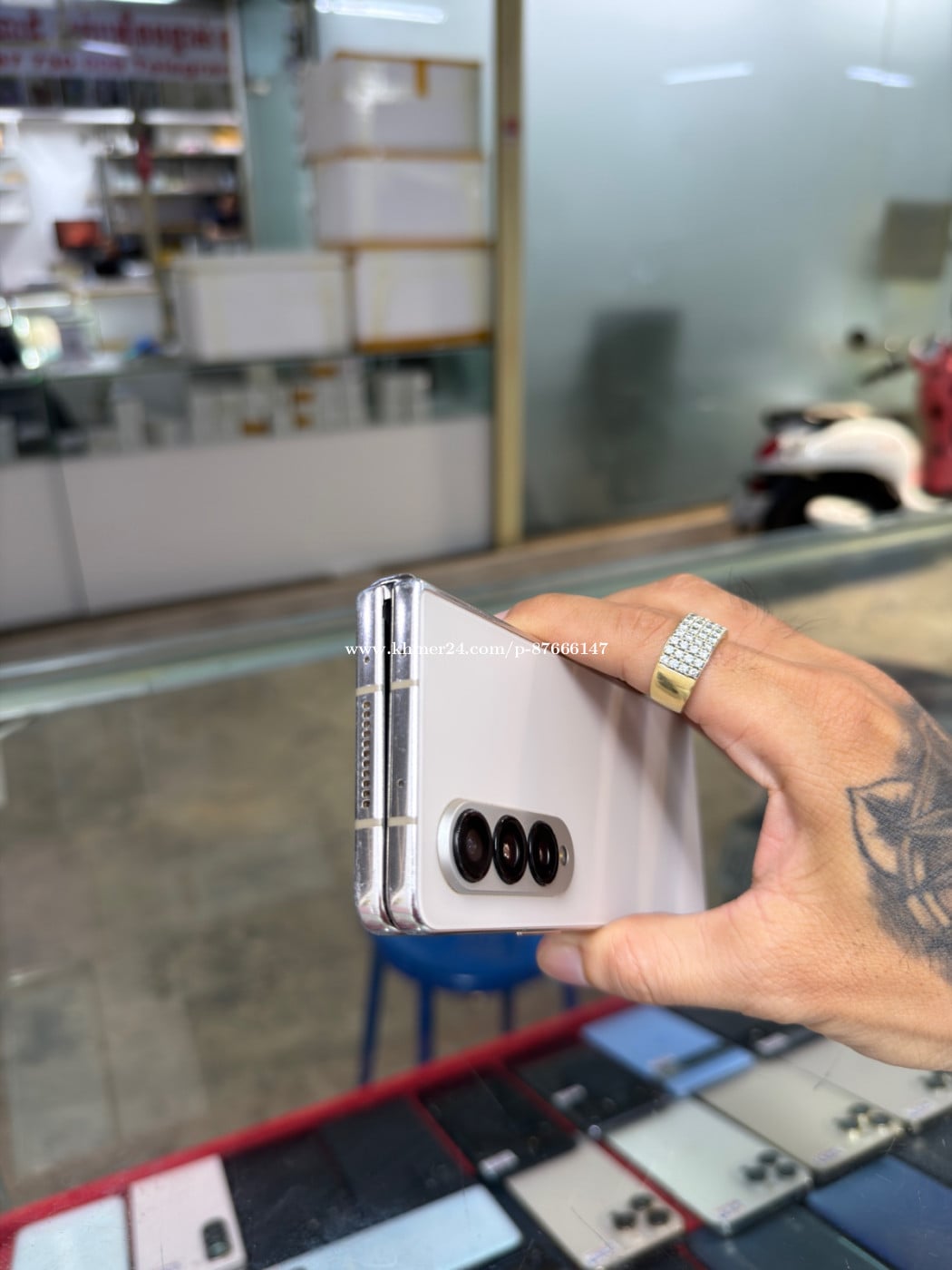 Samsung Fold 4 Company Sim2 Ram12GB HD256GB Phone Condition 90% ឆ្នូតអេក្រង់ក្រៅ , ខូចអេក្រង់ក្នុង