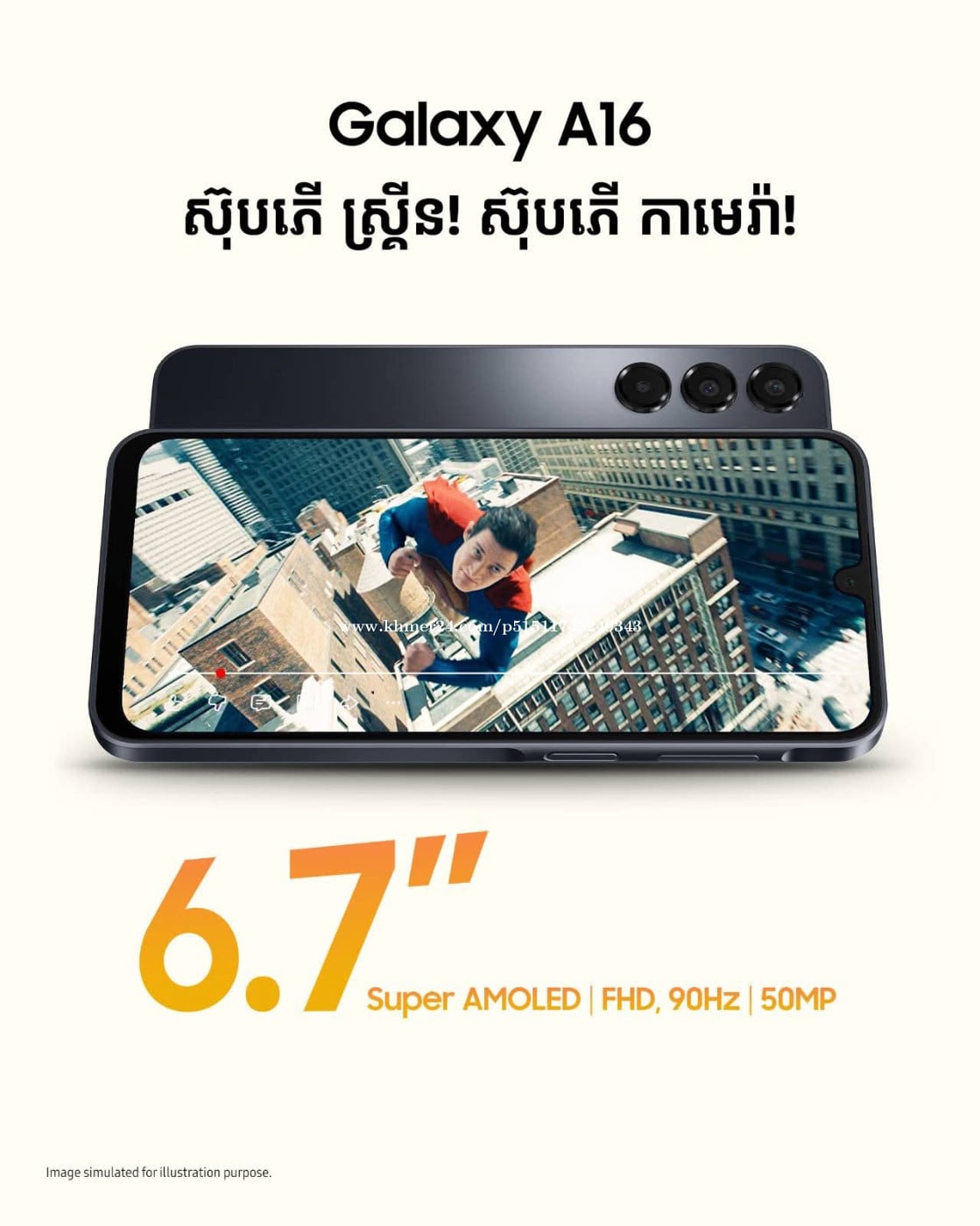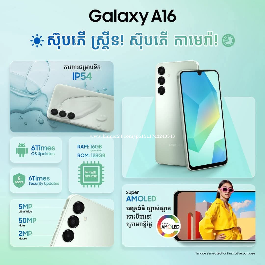 Samsung Galaxy A16 ថ្មីស្រឡាង✨ធានាពេញ 1ឆ្នាំ Ram16(8+8GB) | 128GB តំលៃ 169$ Ram 8(4+4)/128GB តំលៃ 150$ 👍 អេក្រង់ធំ 6.7" FHD+ 90Hz Super AMOLED ភ្លឺច្បាស់ ទោះក្រោមកម្តៅថ្ងៃ 👍 កាមេរ៉ាក្រោយ 3 ជាមួយកាមេរ៉ាគោល 50MP ដែលចាប់យករូបភាពបានច្បាស់ស្អាត 👍 កាមេរ៉ាមុខ 13MP សែលហ្វីបានស្អាត 😍 👍 ការពារជម្រាបទឹកកម្រិត IP54 💦 ☎️លេខទូរសព្ទទំនាក់ទំនងពត៌មានបន្ថែមសូមឆាត Cellcard 077675xxxClick To Call Smart 087675xxxClick To Call Telegram 011599xxxClick To Call ❤️ ✅️ 🔊 ទីតាំងផ្លូវ 143 សង្កាត់បឹងកេងកង3 ភ្នំពេញ Map📌 https://maps.app.goo.gl/SQyz2rBm5FNbjYhv5