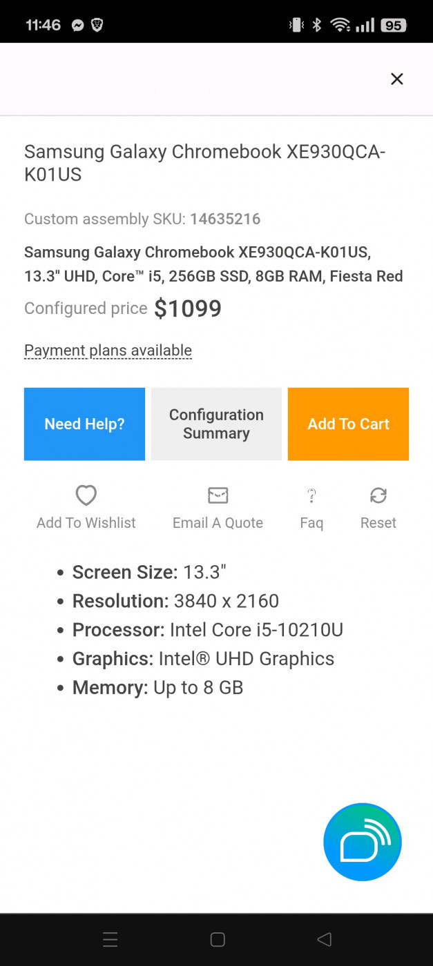 Bought wrong laptop, don't know how to use Chromebook much. Dun use much. So want to sell out. Full set with Messenger protected bag. Samsung Galaxy Chromebook XE930QCA-K01US, 13.3'' UHD, Core™ i5, 256GB SSD, 8GB RAM, Fiesta Red Selling in the US: $1,099. Selling 50% of the price only. https://www.avadirect.com/Samsung-Galaxy-Chromebook-XE930QCA-K01US-13-3-UHD-Core-i5-256GB-SSD-8GB-RAM-Fiesta-Red/Configure/14635216