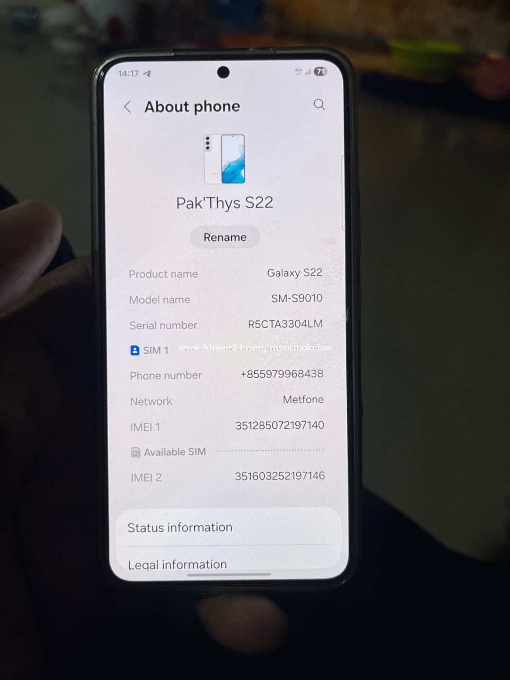 លក់ Samsung Galaxy S22 5G ស៊ីម២ ធានាសានុំស៊ីន សេវាខ្លាំង អេក្រង់ស្អាតដត់ដាន Camera ច្បាស់មុខក្រោយ យាយទៅគ្មានបញ្ហាអ្វីទាំងអស់ Telegram 017557xxxClick To Call