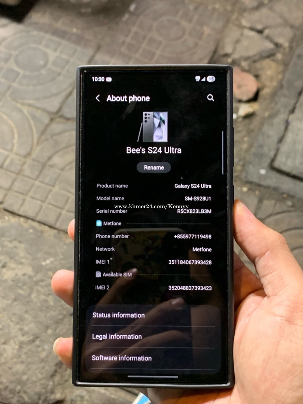 Samsung Galaxy S24 Ultra Ram12G + memory 512GB USA ប្រើប្រាស់បានសុីមមួយ + ESim ពណ៌ខ្មៅនៅស្អាត 99% នៅសុំនុំហ្សុីនទាំងអស់ចឹងបងៗចាប់អារម្មណ៍ មកមើលផ្ទាល់សិនបានទីតាំងនៅភ្នំពេញ តម្លៃ 639$ Free Case UAG ជូនមួយទៀត លេខទំនាក់ទំនងសម្រាប់ទំនាក់ទំនង 093238xxxClick To Call 0977119xxxClick To Call Telegram: +855977119xxxClick To Call