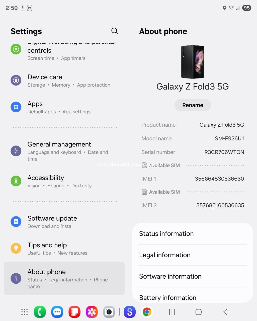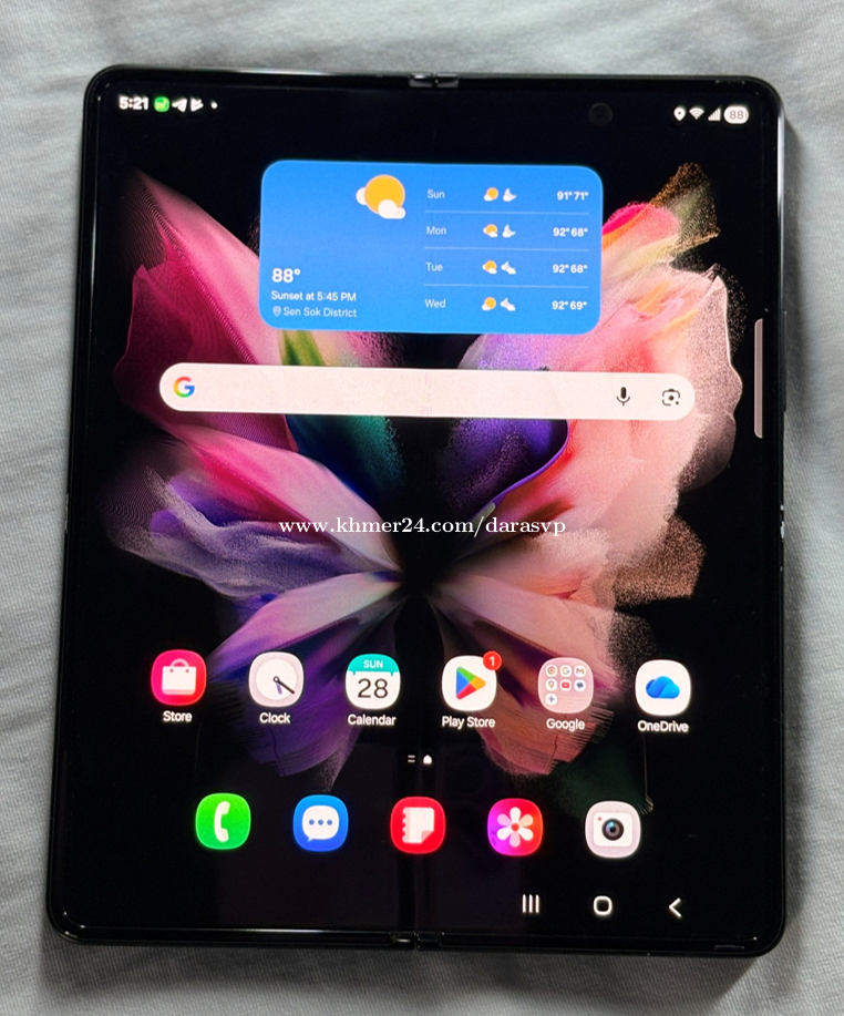 Samsung Galaxy Z Fold3 5G (98% New): - RAM: 12GB - Storage: 512GB - Battery: Good Free case, wireless earpiece, wireless speaker and original Samsung charger. ម្ចាស់ប្រើផ្ទាល់នៅថ្មី និង ស៊ីនទាំងអស់ (កាលទិញបើកប្រអប់ថ្មី)។ តម្លៃអាចចរចារបាន!
