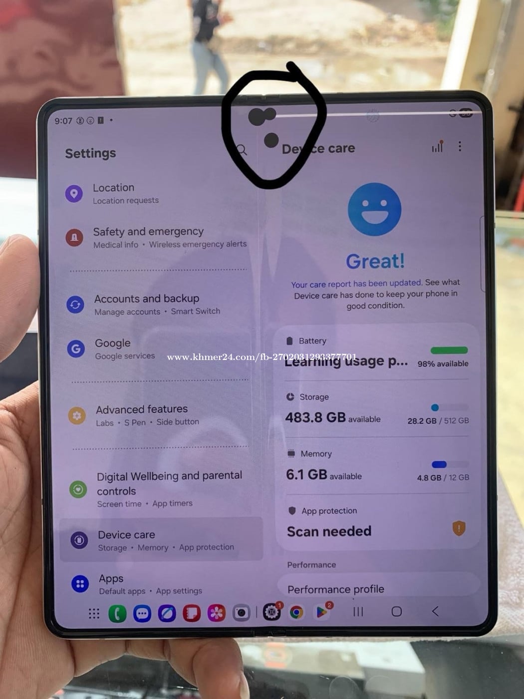 Samsung Galaxy ZFold5/Ram12G/512GB SIM2+esim តួរស្អាត98.99% ✅តម្លៃ=290$ ✅បញ្ជាក់:អេក្រង់ហ្សុីនក្រៅក្នុងតែអេក្រង់ក្រៅប៉ារ៉តបន្តិចដូចក្នុងរូបនឹងអេក្រង់ក្នុងអ៊ុចជាំ2ដុំនឹងឆ្នូតមួយតែការប្រើប្រាស់បានធម្មតាម៉ាអ៉ែម😍 ✅ធានាម៉ាស៊ីនរយៈពេល15ថ្ងៃ ✅ទិញដាច់វៃដូរក៏បាន 📱016441xxxClick To Call 078779xxxClick To Call 0974066xxxClick To Call