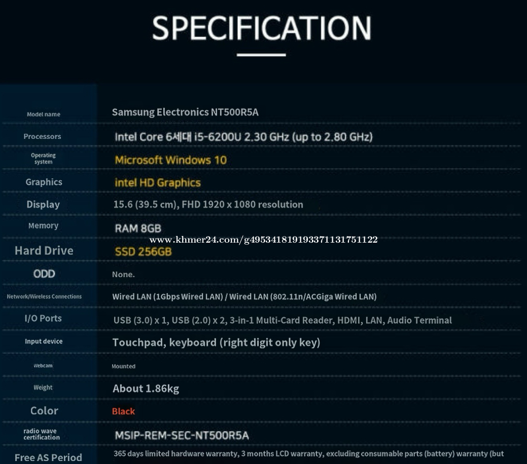 Specifications are in the picture. And it's reset. We provide a wireless mouse, and the built-in touchpad on the laptop is broken as you can see in the picture