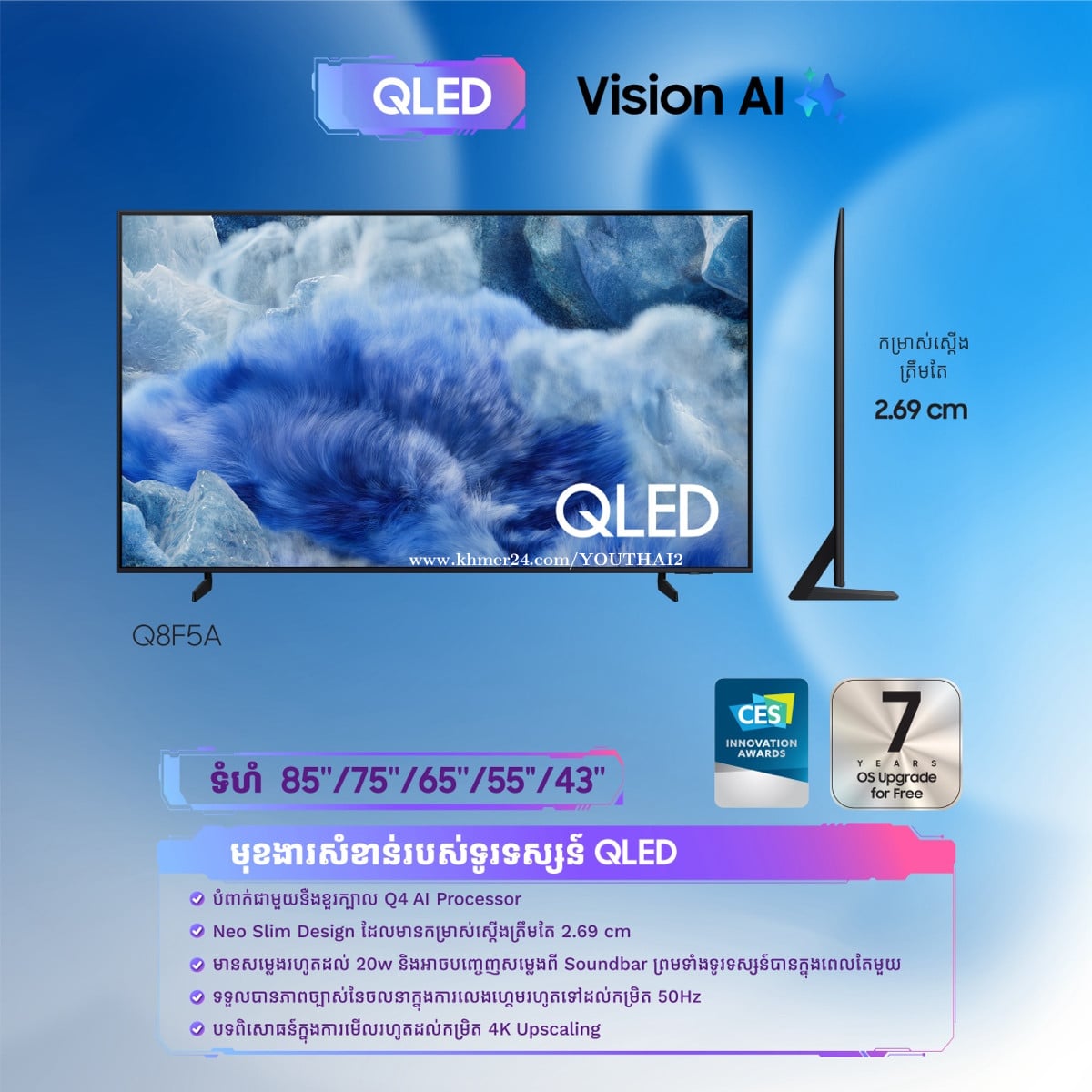 Samsung QLED 55Q8F version AI ធានា១ឆ្នាំ Free បញ្ចូលប៉ុស្ត៏អនឡាន រហូតដលឭជាង2000ប៉ុស្ត៏(ខ្មែរ+អន្តជាតិ) …. 077778xxxClick To Call / 086778xxxClick To Call