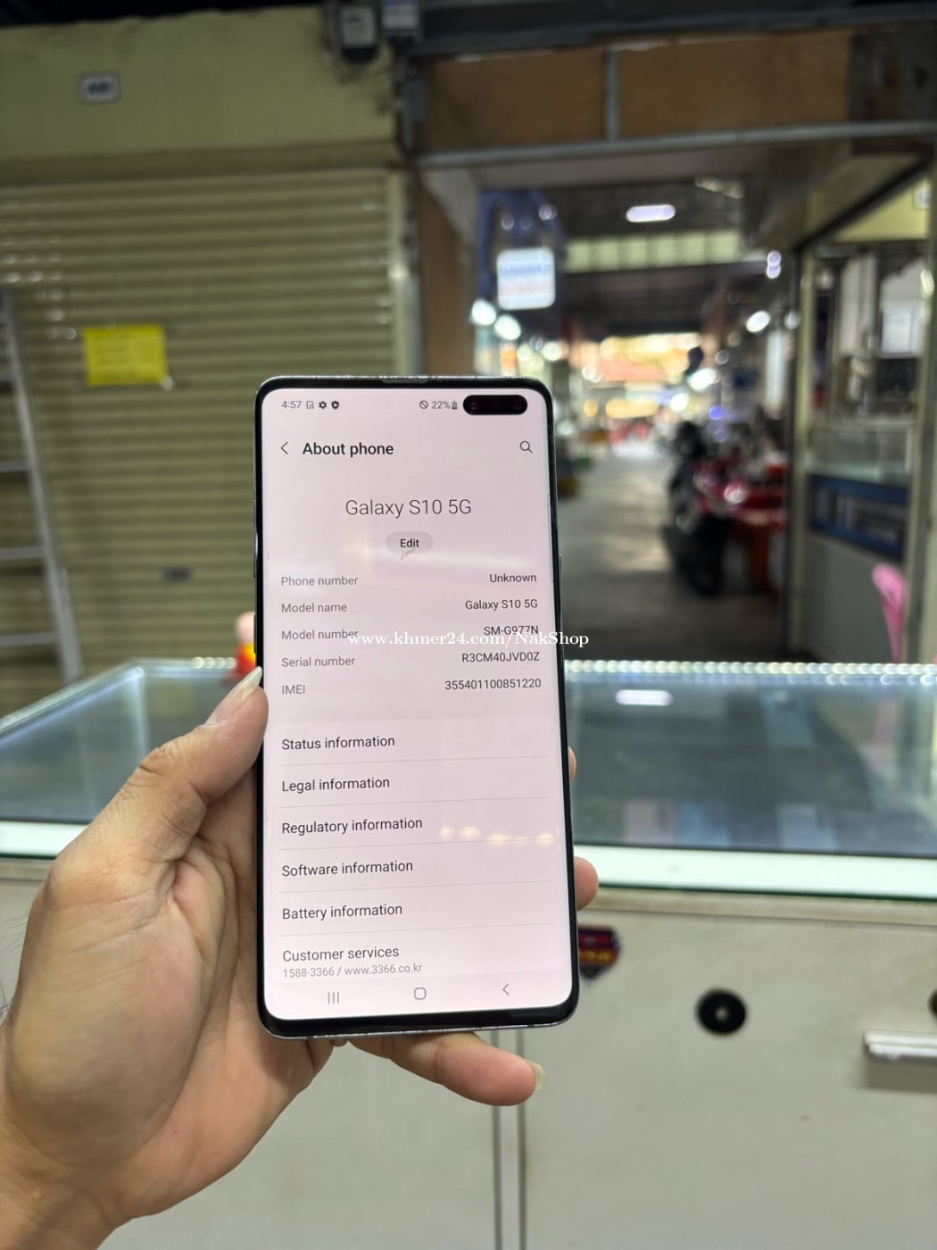 Samsung S10 5G 256G Ram8G Sim1 KH ម៉ាសុីនអេក្រង់ស្រុីនស្ទើរខ្នង